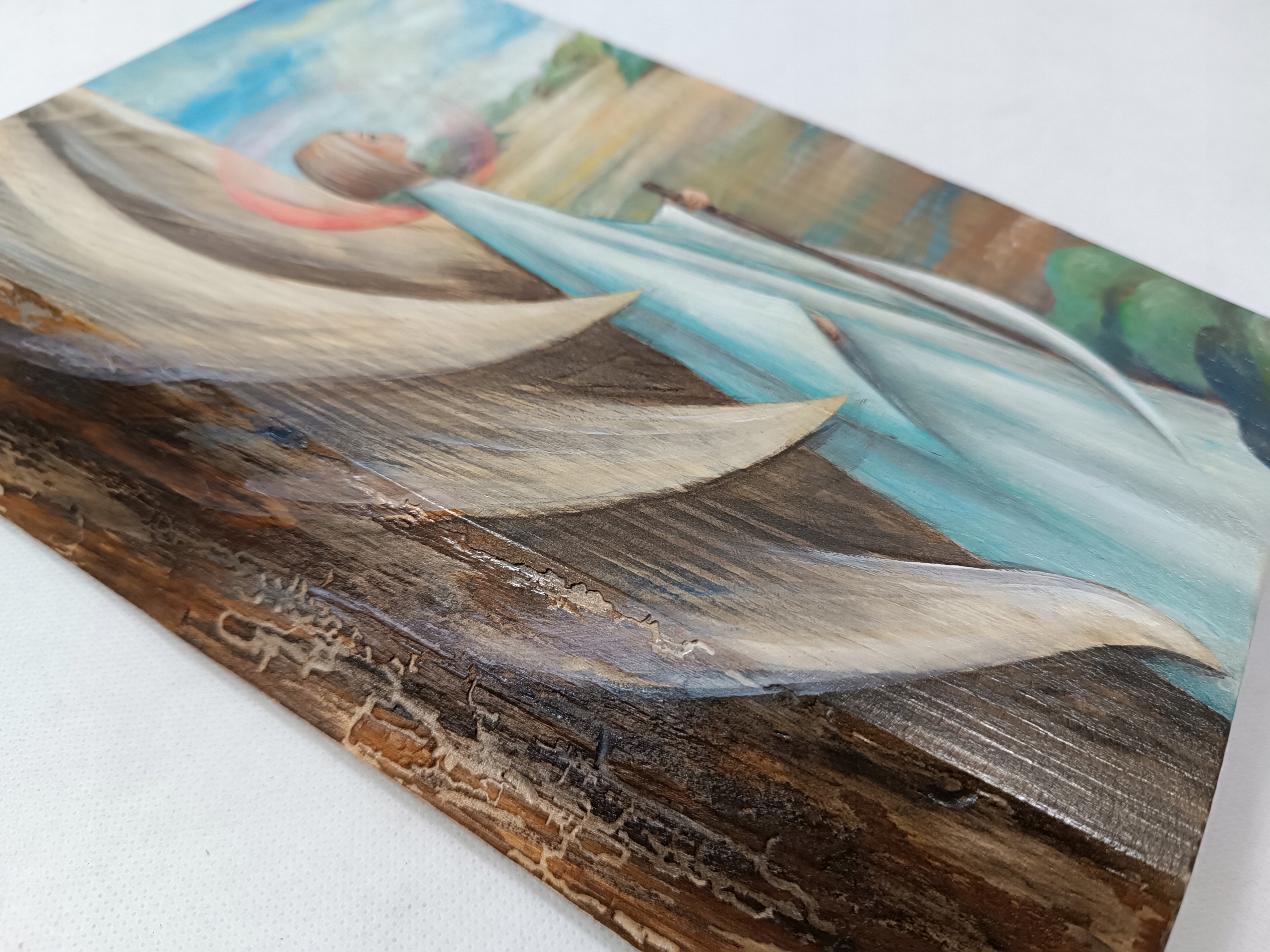 Розпис на дошці з підляшшя. Ідилічний спокій і чарівний дух місця, відображені в лісі.