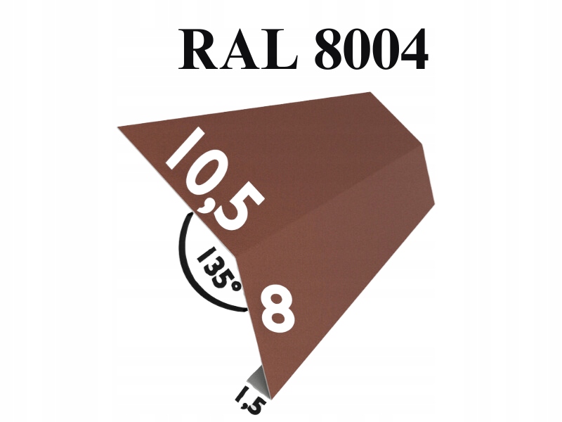 Ми пропонуємо високоякісну верхню планку водостоку з оцинкованої сталі товщиною 0,50 мм у кольорі BRICK MAT RAL 8004. Продукт є необхідним елементом покрівельної системи, ефективно захищаючи від проникнення води під карниз даху.
