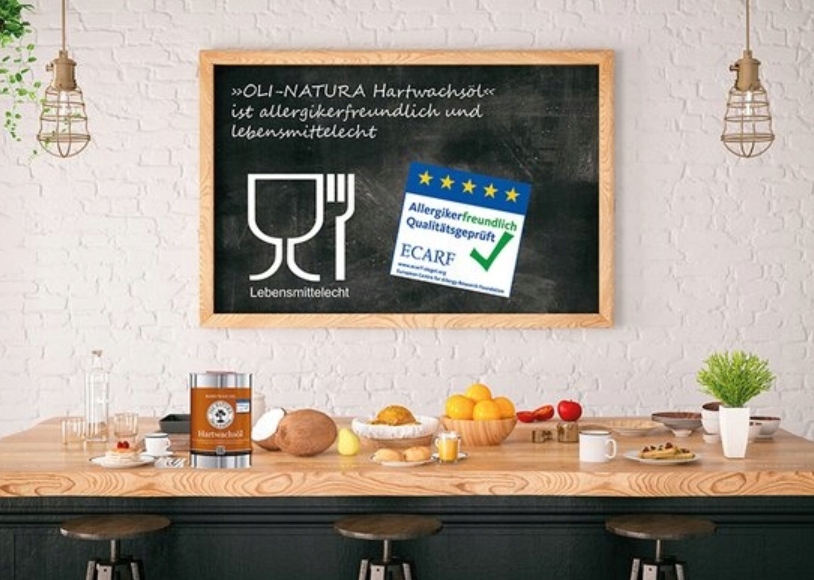 Hartwachsol oil — це комбінація рослинних олій, смол і воску. Вміст твердого карнаубського воску ніжно підкреслює колір деревини, а шовковиста поверхня надає приємного дотику. Його легко використовувати для одного або двох нанесень валиком, пензликом або розпилювачем, і наносити тампоном не потрібно. Поверхня, оброблена таким чином, стійка до води та хімікатів, які використовуються в домашньому господарстві. Масло НЕ містить консервантів, біоцидів, кобальту чи оксиму. Загартований матеріал безпечний для людей, тварин і рослин. Він відповідає вимогам DIN EN 71-3 (безпека іграшок), DIN 53160 (стійкість до слини та поту) і був схвалений Німецьким інститутом будівельних технологій (DIBt).