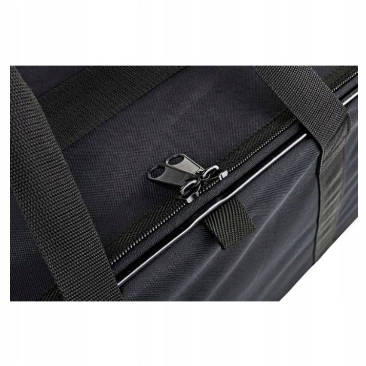 Millenium Touring Trolleyце сумка, призначена для транспортування обладнання, барабанних аксесуарів, кабелів і важких предметів. Має складні ручки з боків, а також посилені борти та дно з дерева, що гарантує виключну міцність. Сумка оснащена блискавкою. Його зовнішні розміри становлять 111 x 36 x 25 см, а внутрішні — 108 x 33 x 23 см. Максимальна вантажопідйомність становить 25 кг, а його вага становить приблизно 6,7 кг. Крім того, сумка має колеса, що полегшує переміщення та забезпечує зручність при транспортуванні барабанного обладнання.