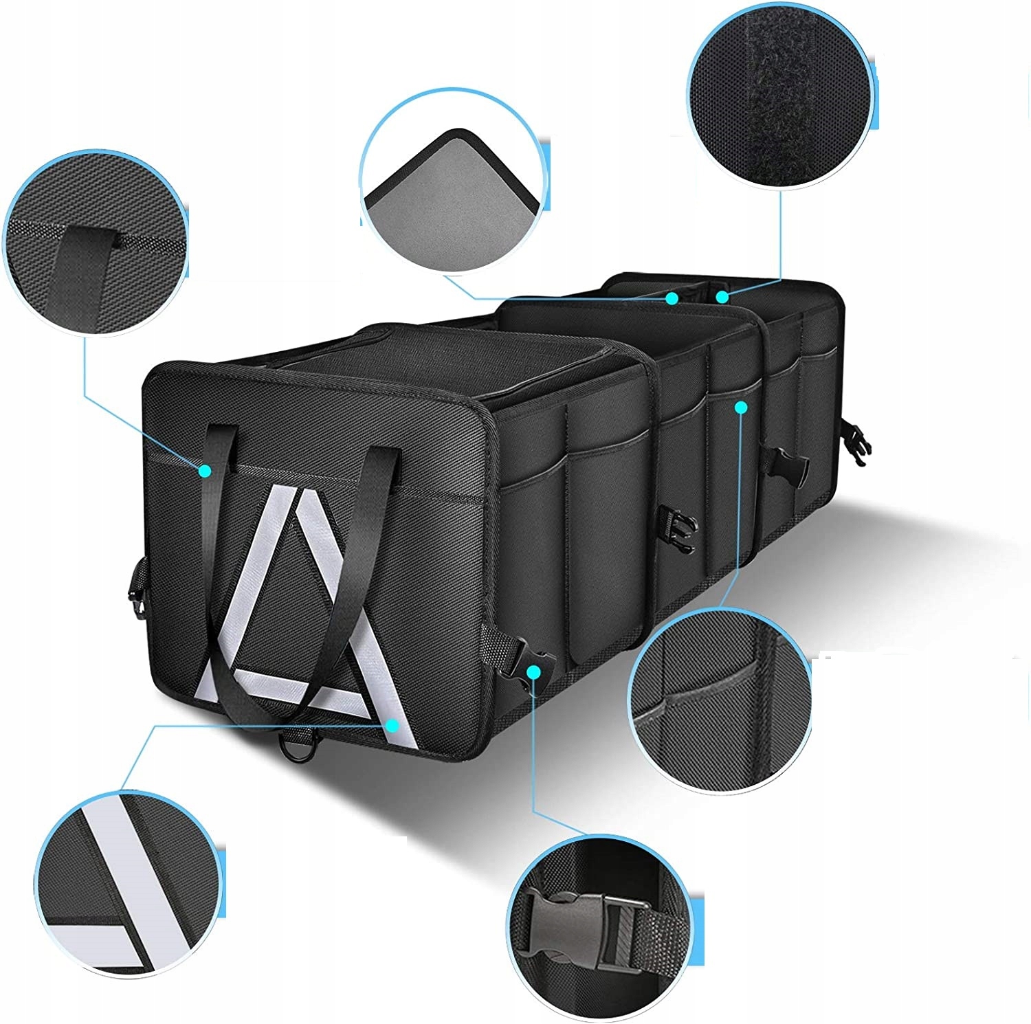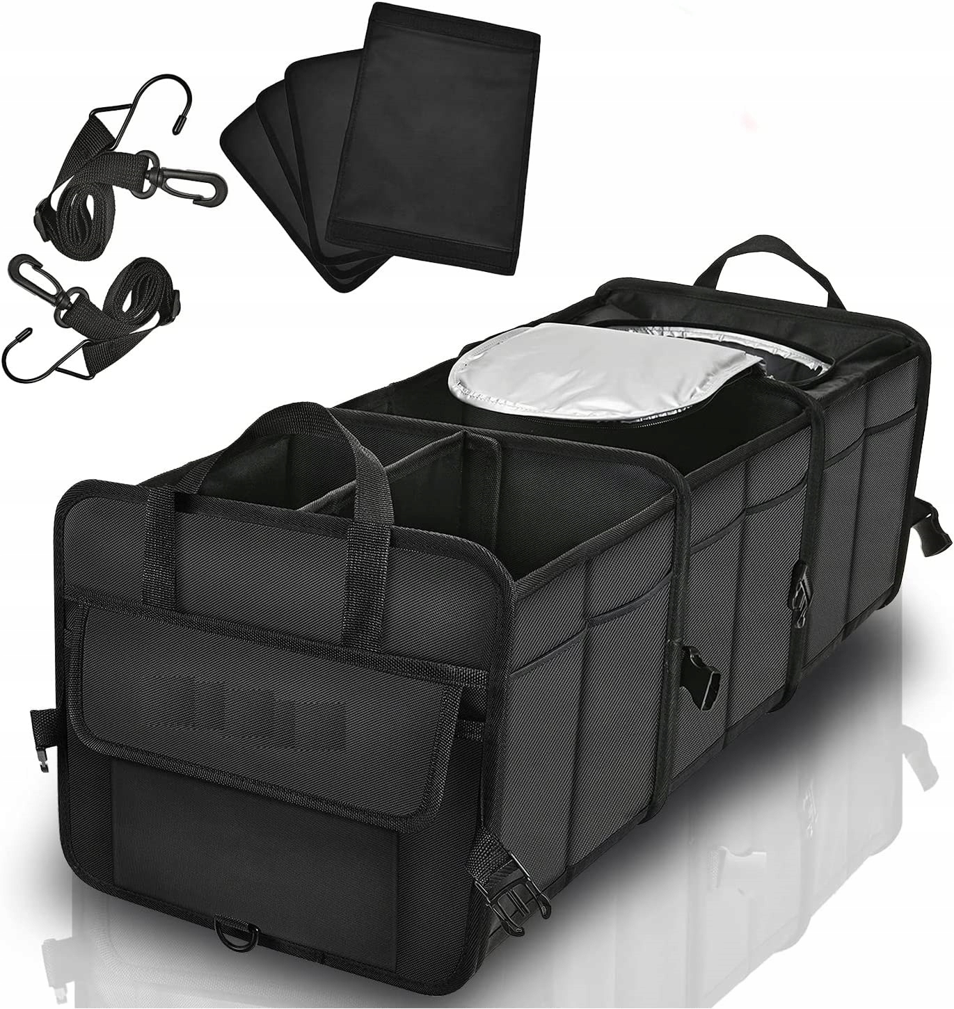 Багатофункціональний, міцний органайзер як для багажника, так і для заднього сидіння автомобіля.