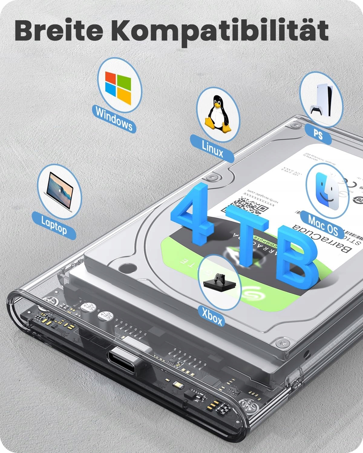 - Універсальна сумісність: Цей корпус жорсткого диска на жорсткому диску 、 SSD призначений для SATA 2,5 -дюйма 7 мм/9 мм та жорсткого диска SSD. Сумісний з ОС Windows, Linux та Mac і вищим, сумісним із Western Digital, Toshiba, Samsung, Kingston, Crucial, Hitachi тощо. Широке використання в ПК, ноутбуках, Xbox, PS5/PS4/PS3, маршрутизаторах тощо. (Retakeout, сумісна з USB 2.0 або 1.1)