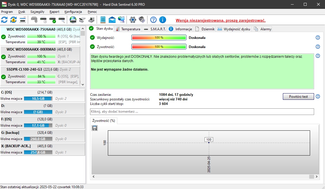 Тест моніторингу жорсткого диска Sentinel STANDARD 2025 PL HDD SDD безстроковий диск