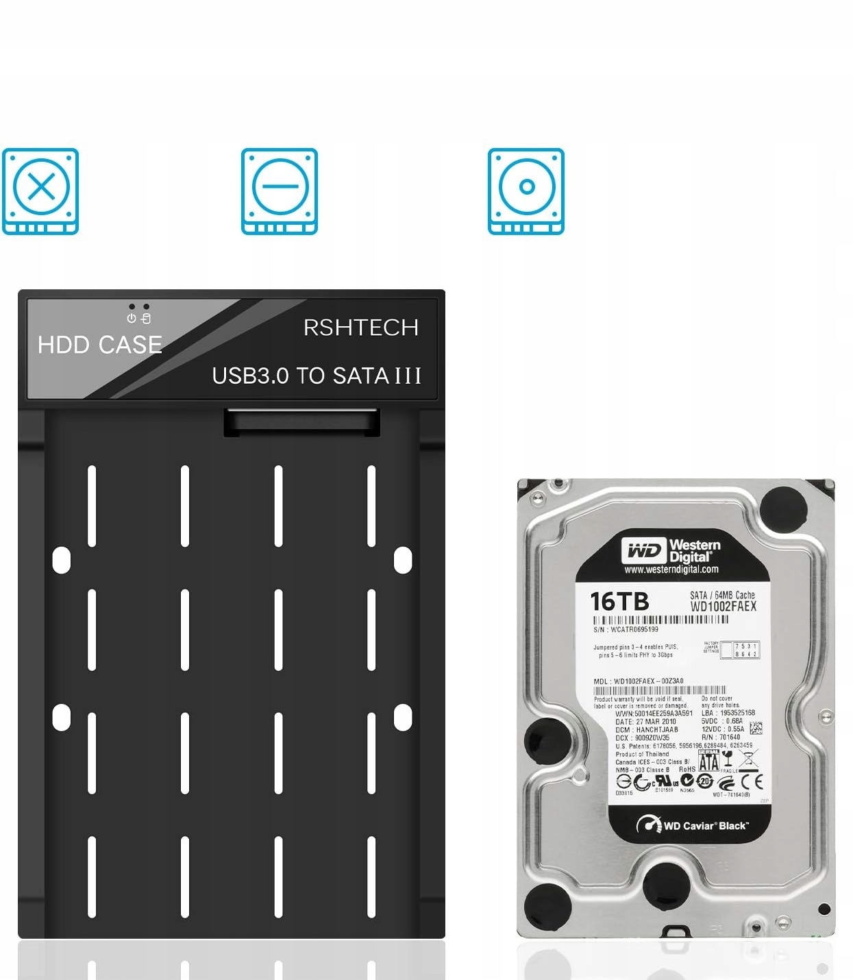 - ✅ Широкий сумісність: Підтримує всі диски SATA I/II/III у форматах 2,5" і 3,5" з ємністю до 16 ТБ..