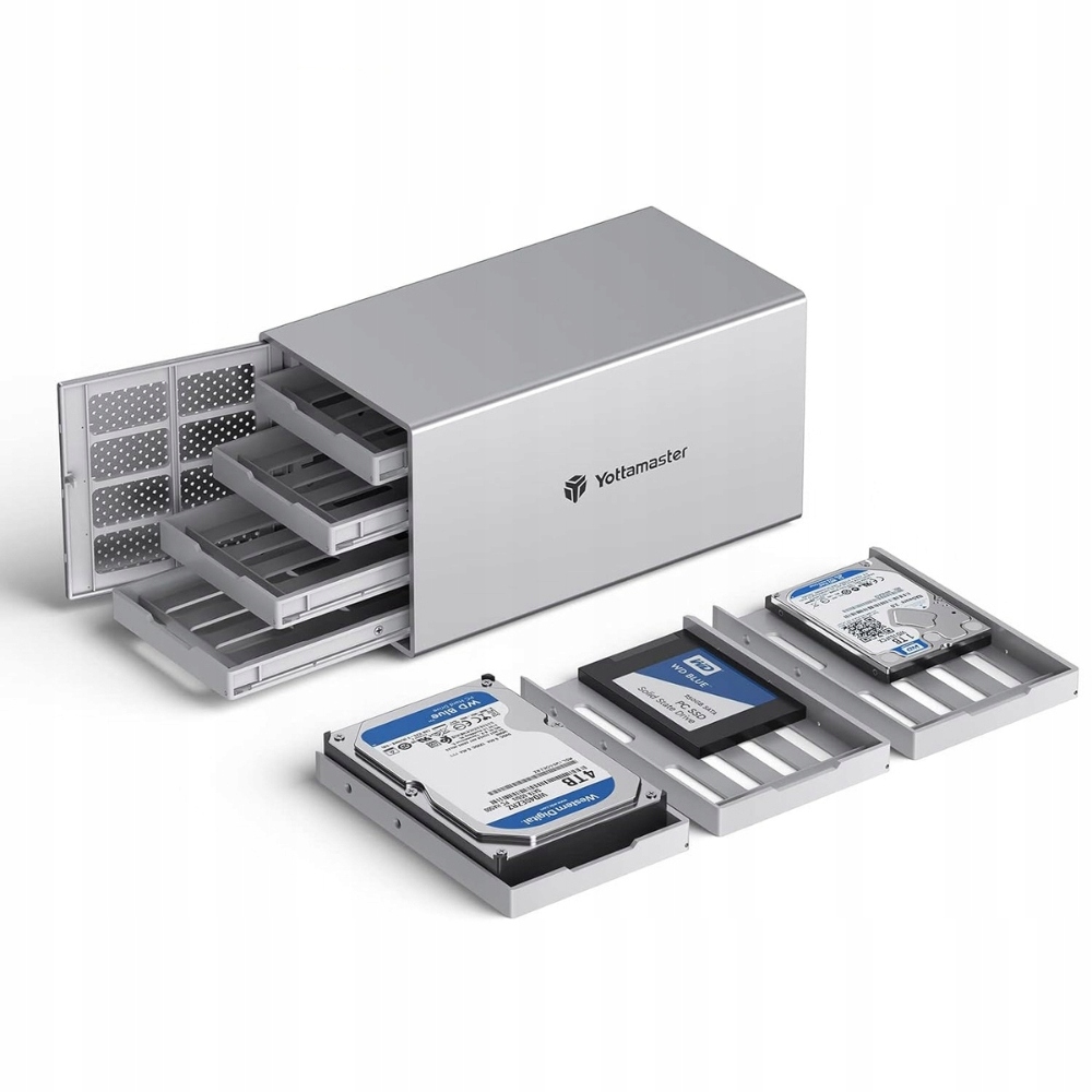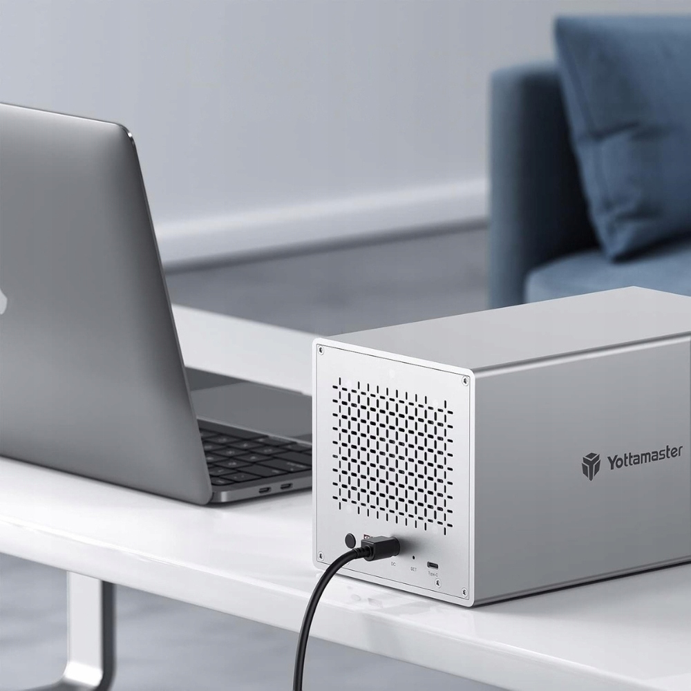 4-панельний диск Yottamaster -це надійна система зовнішнього зберігання для окремих користувачів, що підтримує розширену пам'ять до 64 ТБ. Завдяки простому поштовху в вхідних дверях, збірка та заміна жорстких дисків -швидка і неприємна. Це ідеальний вибір для зберігання даних вдома або в офісі.