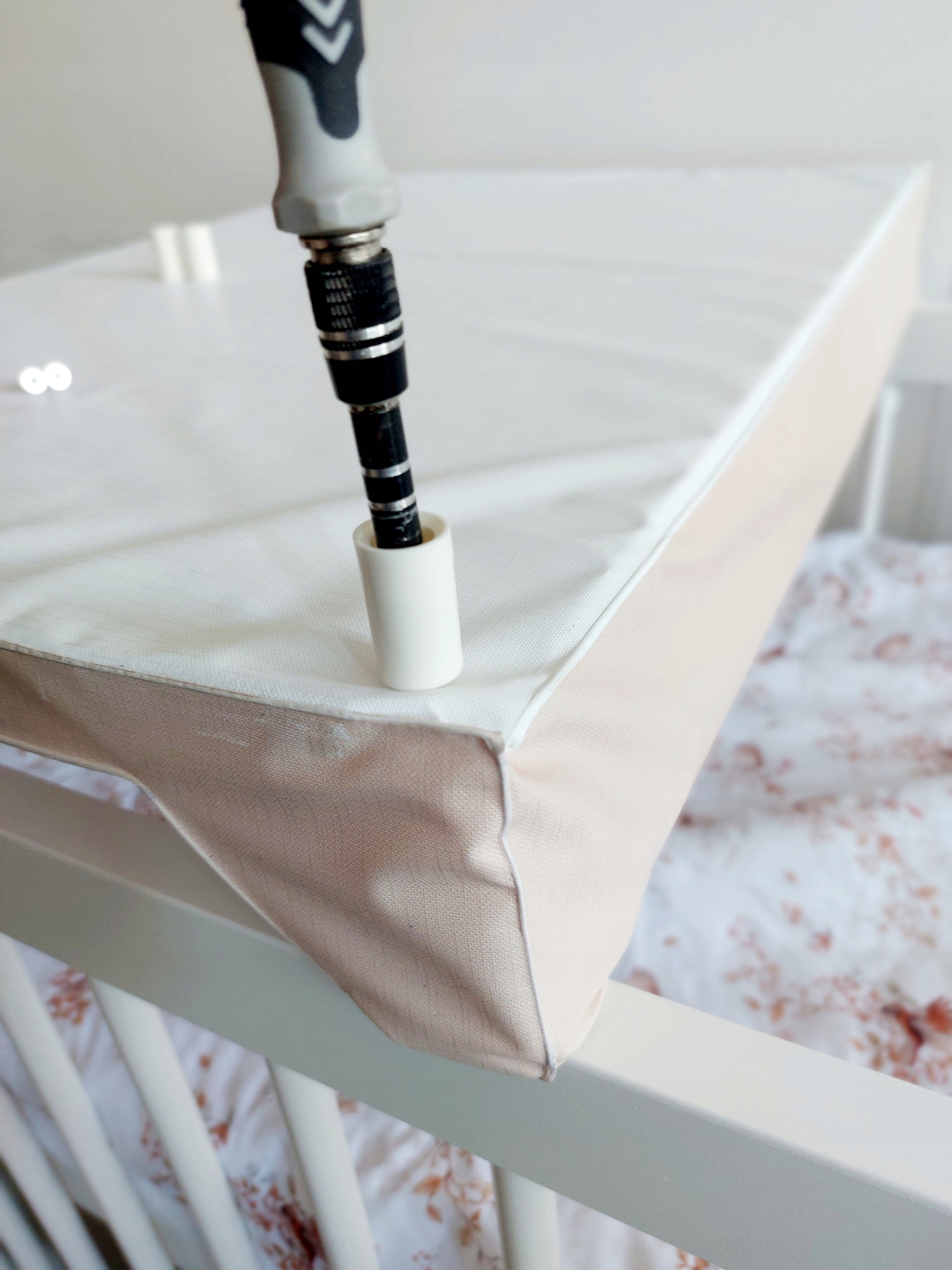 встановлено на ліжечко, дозволяє зручно та безпечно прокручувати та змінювати пелюшки .