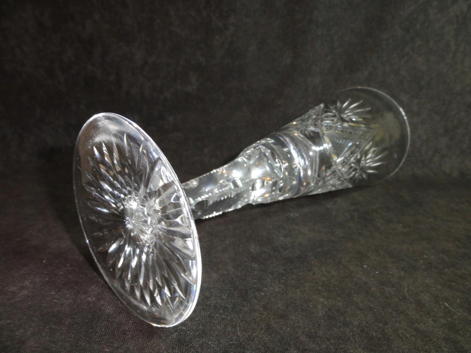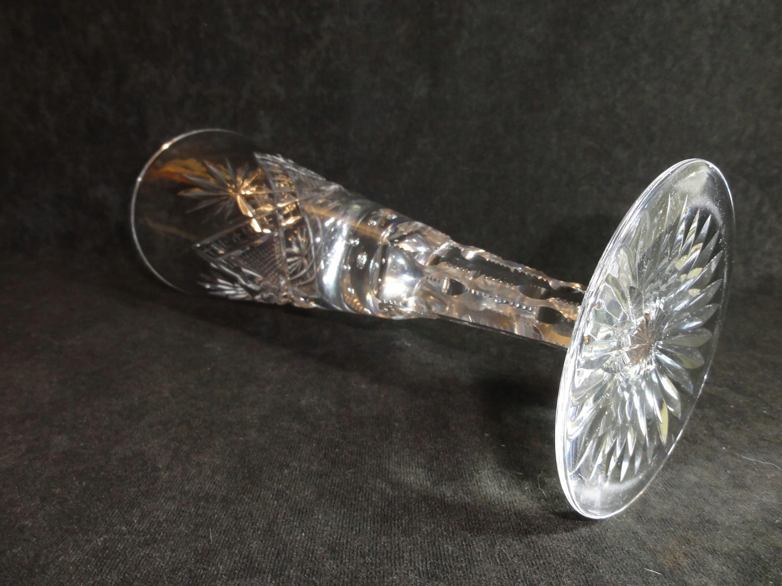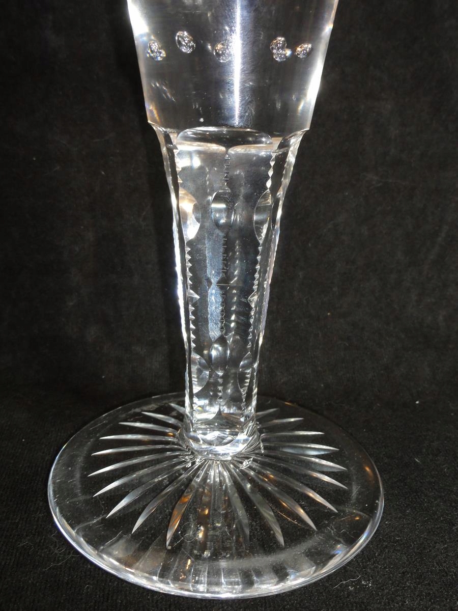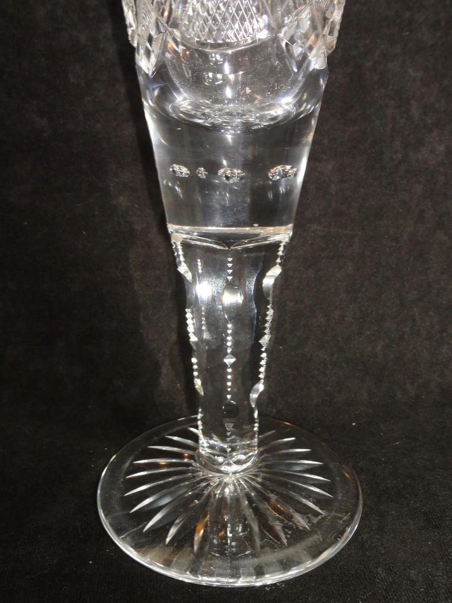 *чаша з безбарвного скла, видування форма, ніжка шліфована, чаша з 9 повітряними бульбашками в основі, точно шліфована на черевці, ніжка з розеткою,