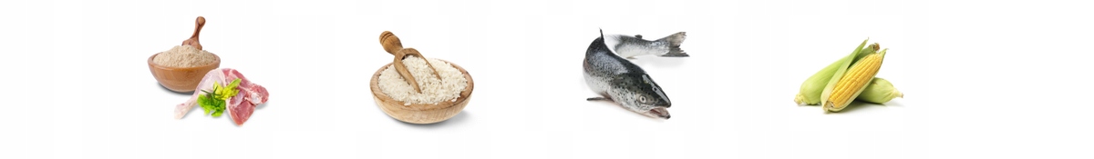 Інгредієнти: сушений білок птиці, рис, цільнозернова кукурудза, шкварки, буряковий жом, жир птиці, сушений лосось 6,0%, гідролізований білок птиці, мінерали, сушена