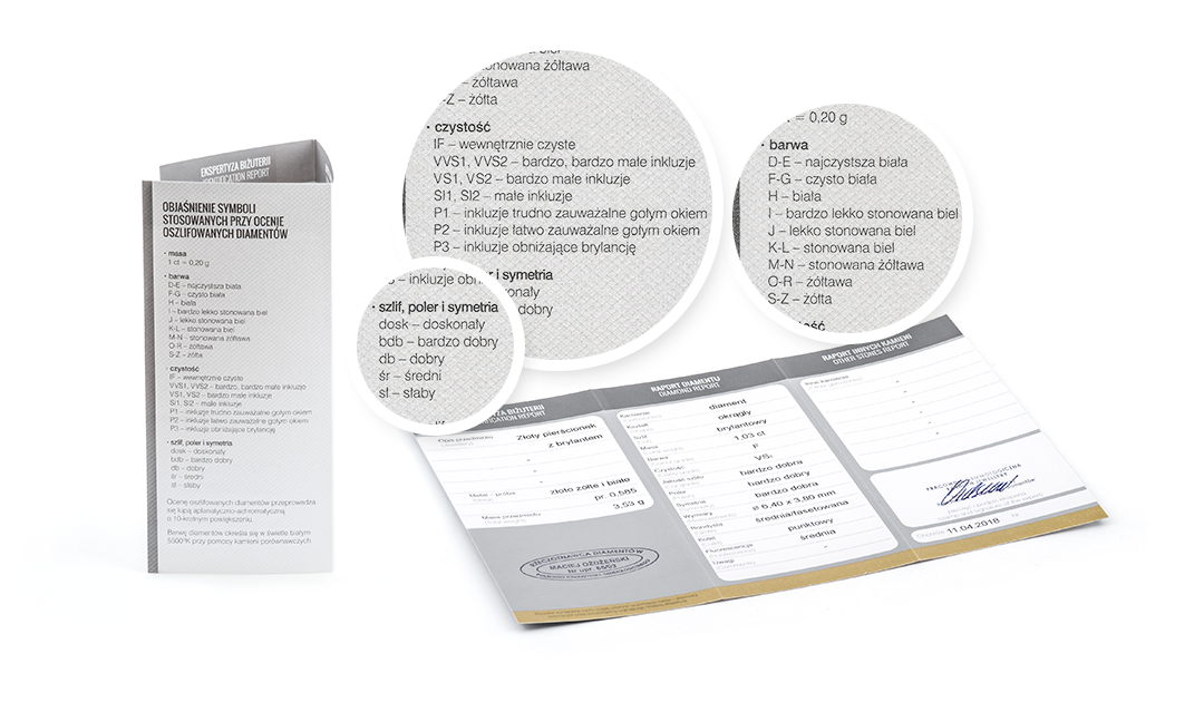 Ми додаємо до кожного продукту сертифікат про справжність, виданий кваліфікованим оцінювачем Міжнародної геммологічної лабораторії IGI.