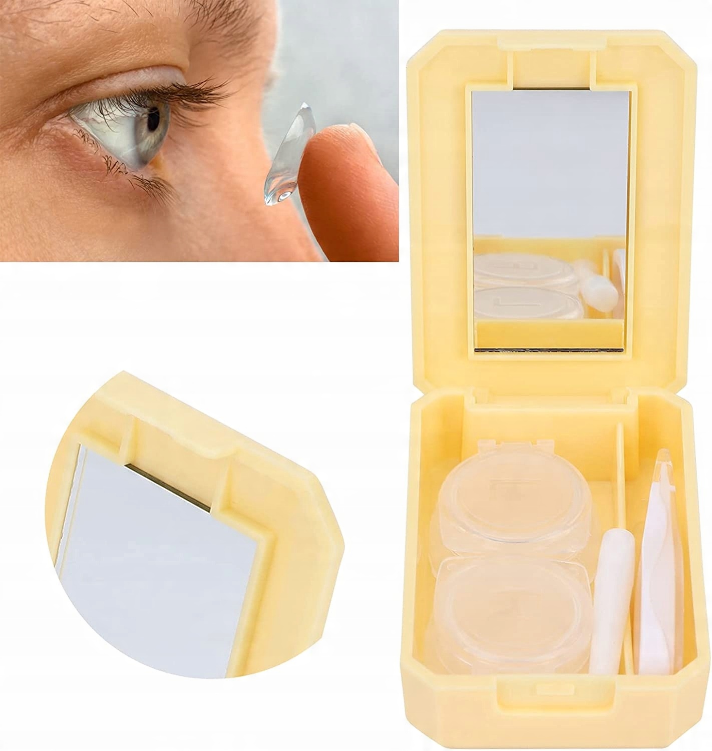 Жовтий футляр для контактних лінз, портативні