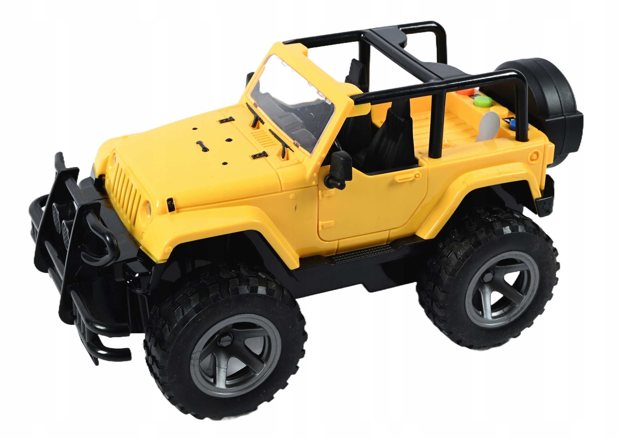 Жовтий позашляховик для всіх любителів позашляховиків. Іграшка виготовлена з високоякісного пластику. Він має чотири функціональні кнопки на даху, які активують світлові та звукові ефекти.