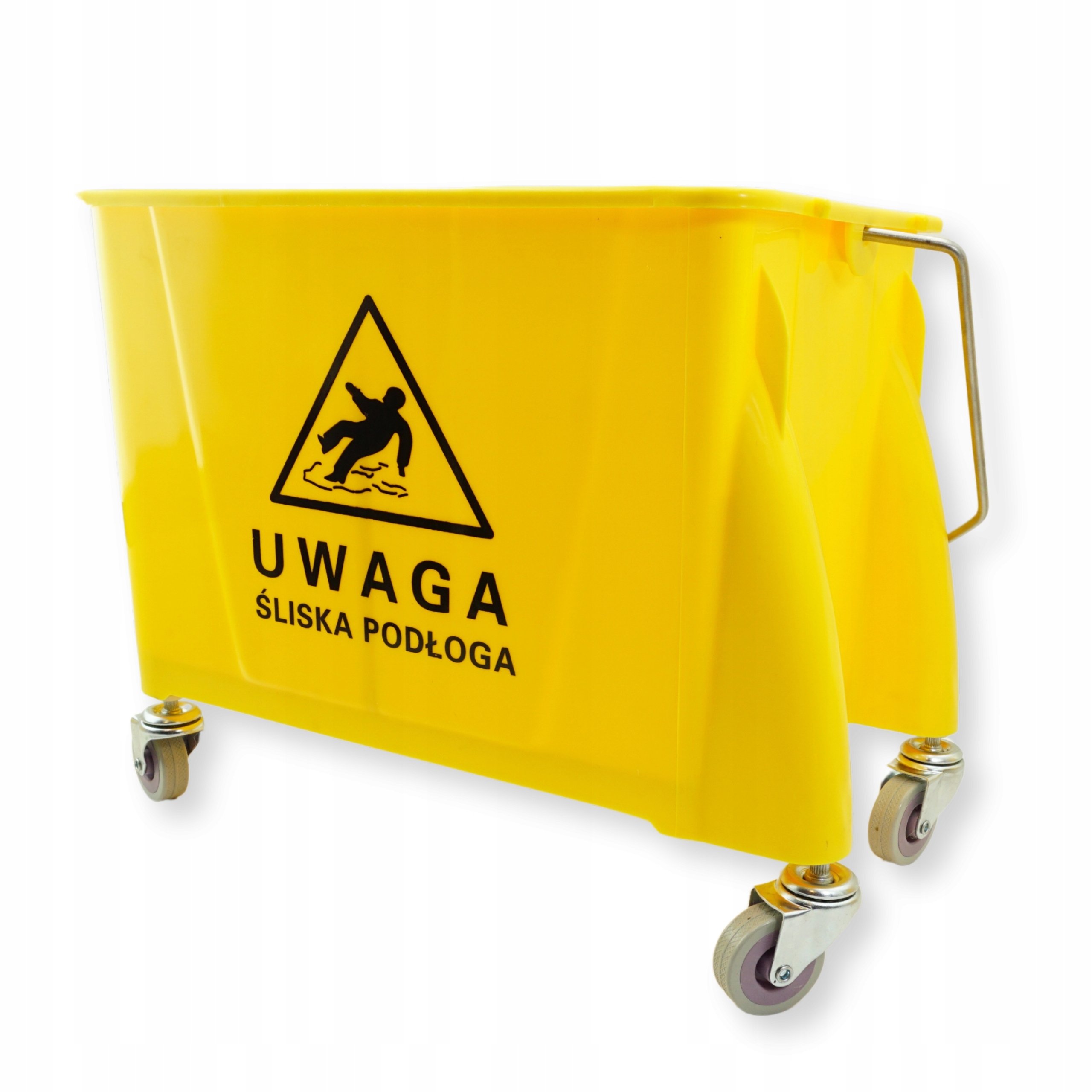Візок оснащено жовтим відром із вражаючою місткістю 20 л, що робить його ідеальним для професійного прибирання в таких місцях, як школи, дитячі садки, офіси, медичні установи, ресторани або навіть приватні квартири. Візок полегшує транспортування та зберігання необхідних засобів для чищення.
