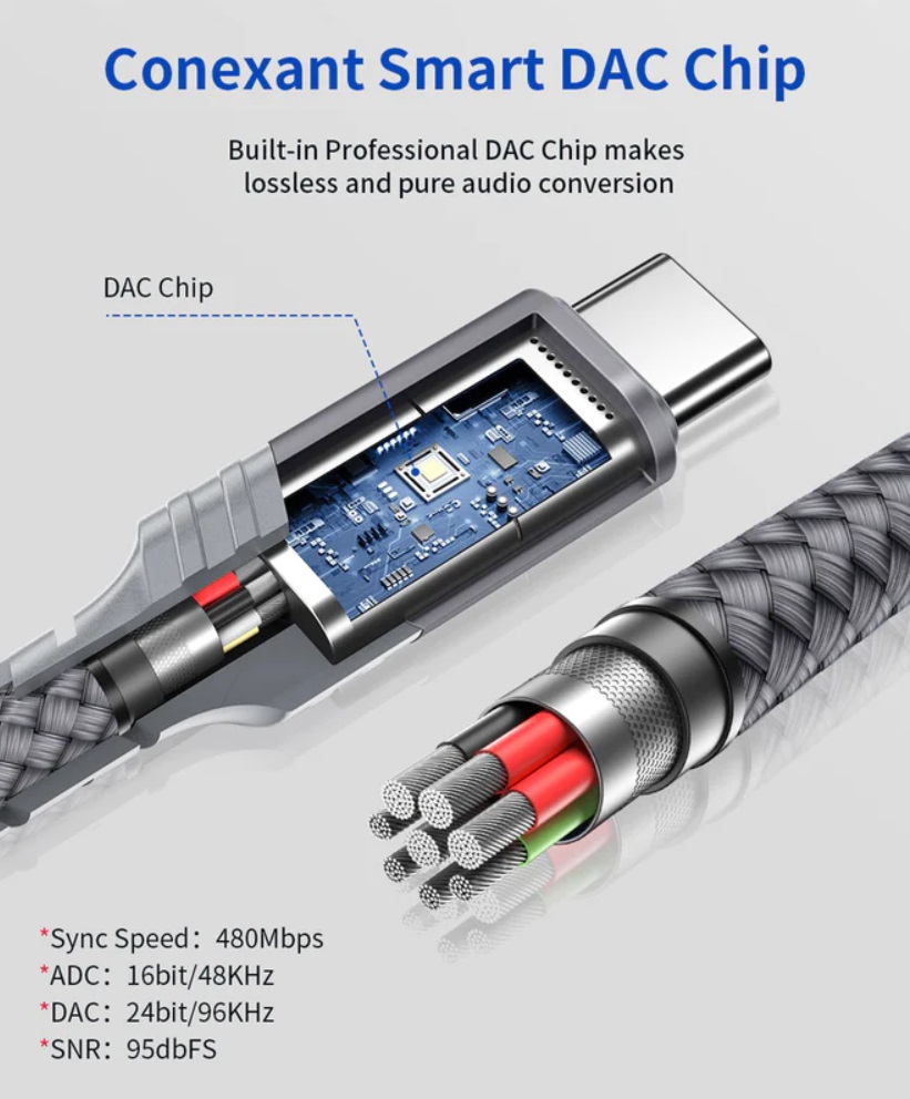 ✅ Цифровий сигнал із порту USB-C точно перетворюється на аналоговий, що дозволяє відтворювати звук без втрати якості.