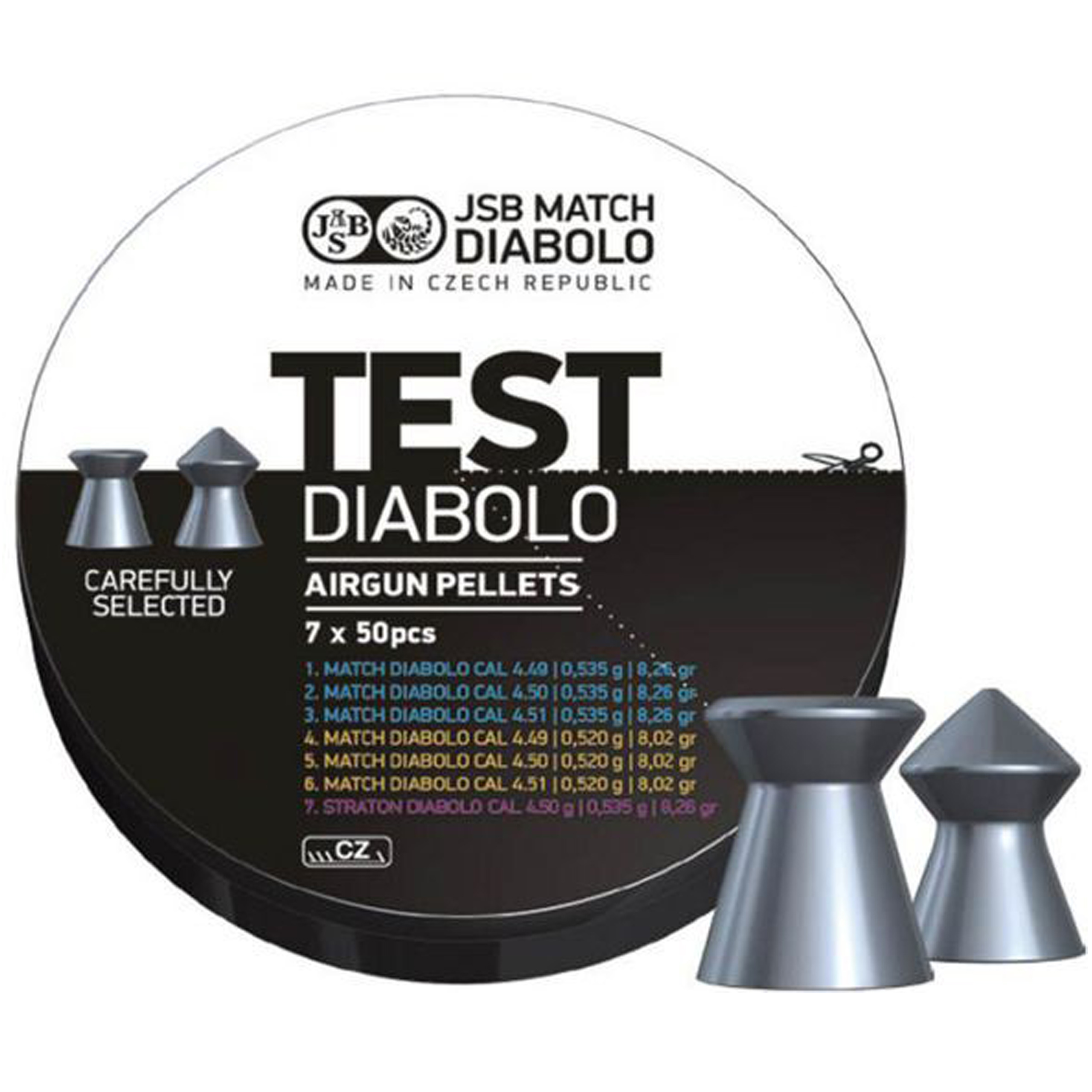 Матч Діболо Тест Середня вага - це сім зразків діаболо в калібрах: 4,49 - 4,5 мм в одній упаковці. Тестовий комплект полегшує вибір правильного пострілу для вашого вітряка.