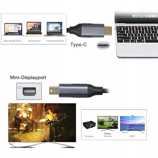 jser USB 3.1 Тип кабелю C USB-C для Mini DisplayPort DP MEN'S 4K для монітора MacBook та ноутбука
