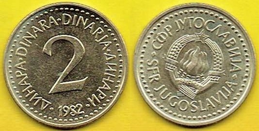 JUGOSŁAWIA 2 DINARA 1982 r.