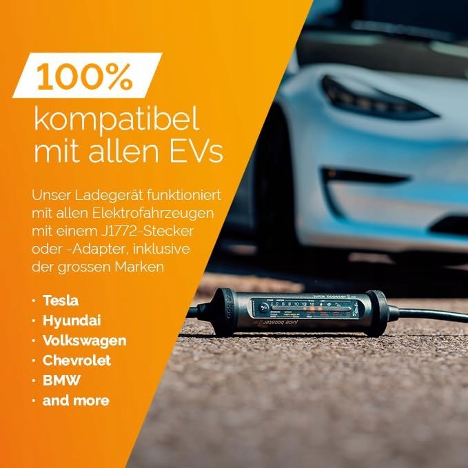 - Застосування J+ Пілот: Контролюйте всі функції вашого соку Booster 3 Air зручно з диваном. До них належать активація, контроль струму, прогрес зарядки, статистика та управління зарядкою. стандарт). Крім того, пристрій та кабель для зарядки електричного автомобіля типу 2 11 кВт стійкі до удару і можуть бути зумовлені