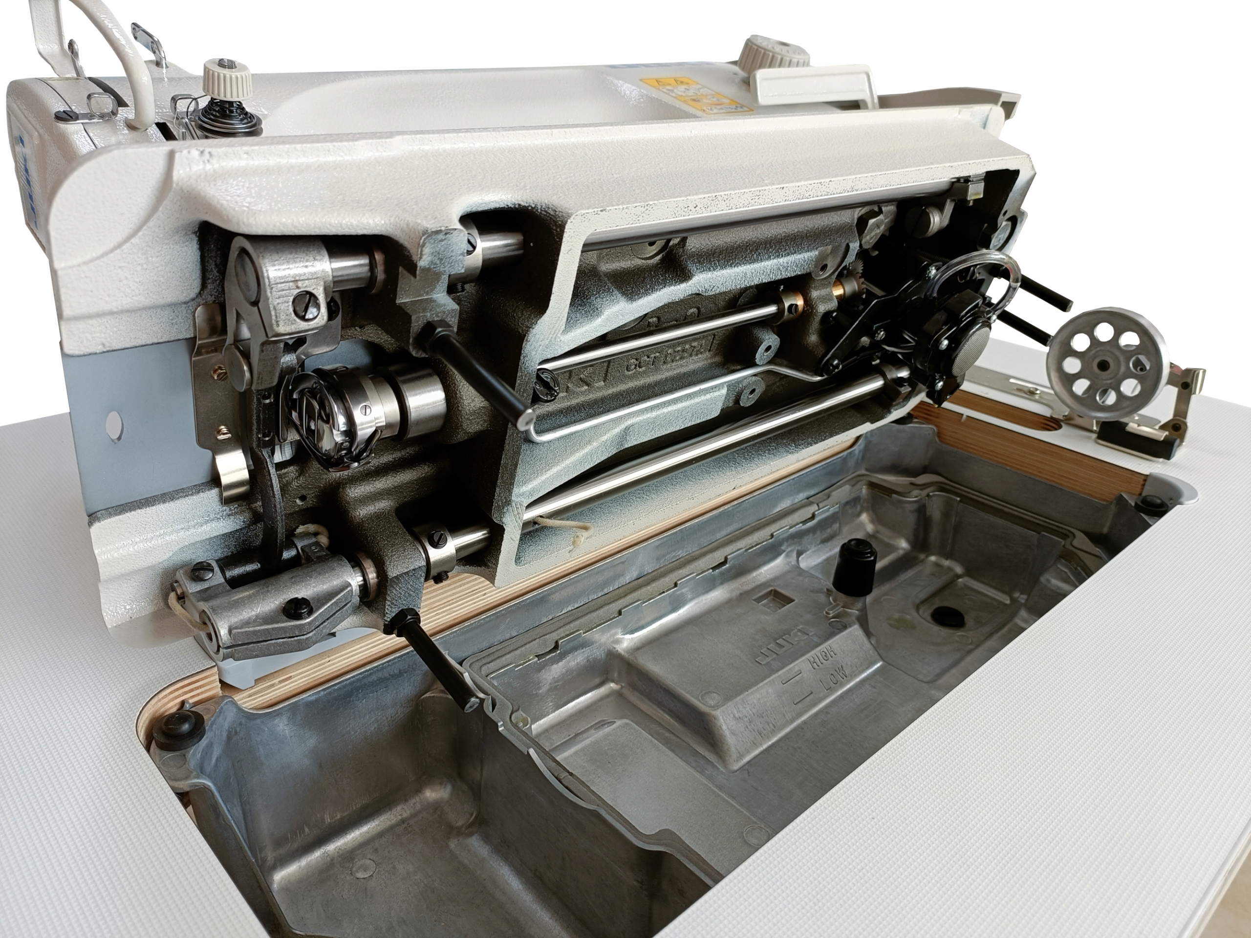 Машина має сучасний, точний нижній пристрій подачі, зубчасті зуби, що гарантують точне переміщення тканини навіть на максимальній швидкості шиття.
