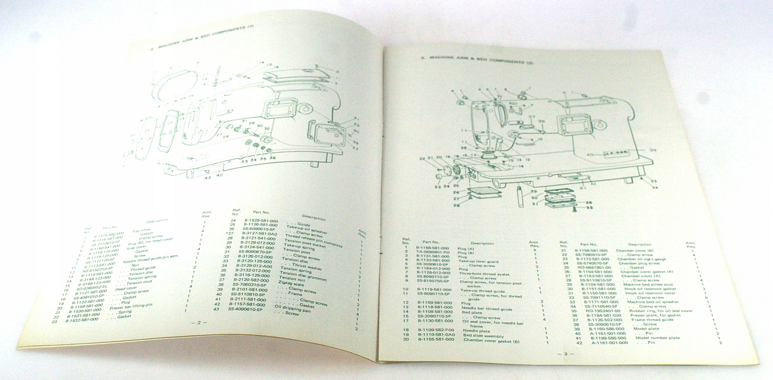 Посібник користувача швейної машини JUKI LZ-586 + каталог запчастин,Tokyo Juki Industrial, 1970-ті роки, дуже хороший стан, англійська мова, 30 см.
