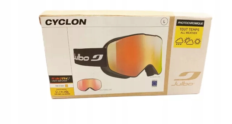 - Для катання на лижах у кожну погоду Julbo пропонує циклонські окуляри з циліндричним фотохромним склом. Фотохромні окуляри темніють під впливом УФ -випромінювання, що дозволяє отримати хорошу видимість. Ефективне антифог та ефективне поле зору.