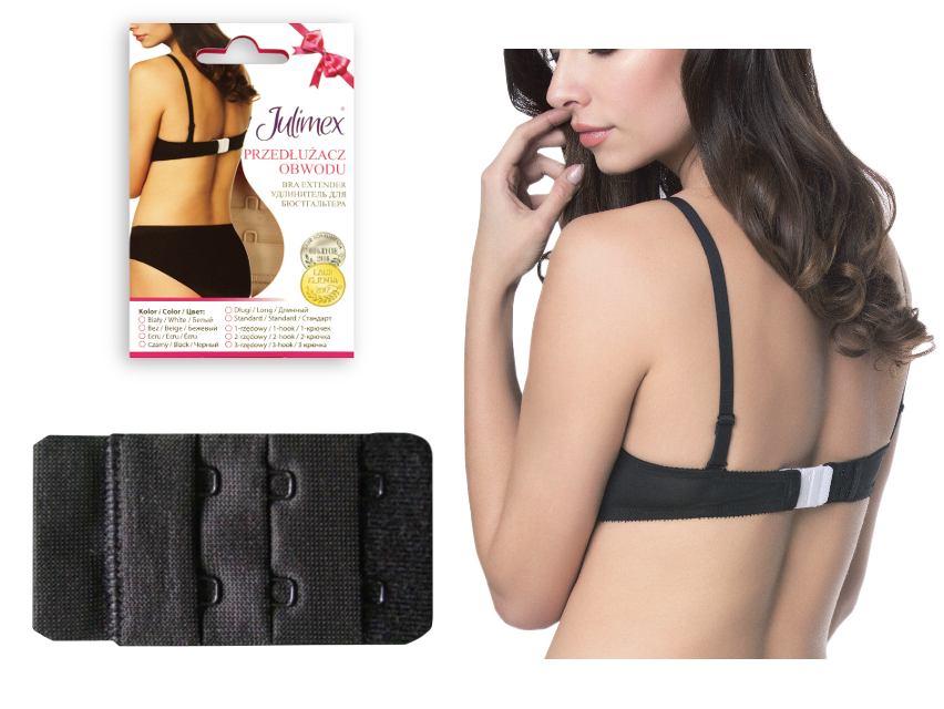 ПОДОВЖУВАЧ БЮСТГАЛЬТЕРА. Швидкий і простий спосіб збільшити окружність бюстгальтера, який став занадто тісним. Завдяки універсальній відстані гачків він підходить для всіх стандартних застібок бюстгальтера.