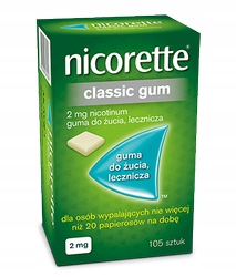 Жувальна гумка Nicorette Classic Gum допомагає запобігти або полегшити симптоми відміни нікотину, включаючи дратівливість, тривогу, розлади настрою, запаморочення, головні болі та розлади сну.