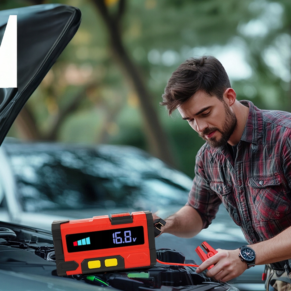 Цей автомобільний стартер оснащено чітким дисплеєм, який дозволяє легко перевіряти рівень заряду акумулятора навіть у темряві. Ви можете контролювати рівень заряду акумулятора, стан напруги, рівень заряду, що залишився, індикатори входу/виходу та. Це дає змогу швидко зарядити пусковий пристрій і підготуватися до ситуацій із розрядженням акумулятора.