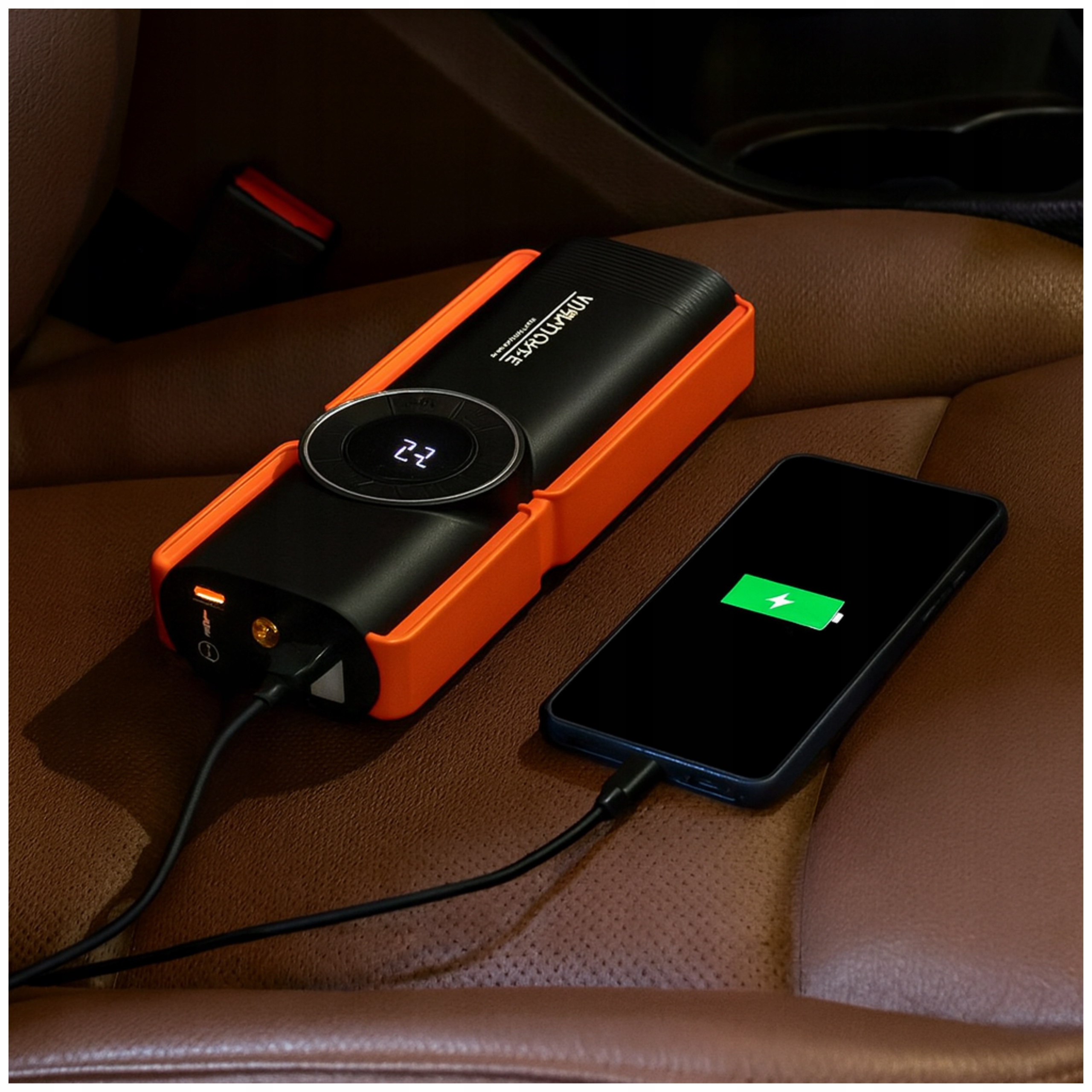 - Порт для зарядки компресора – для накачування шин та аксесуарів