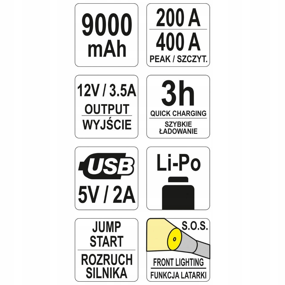 JUMP STARTER DEVICE POWER BANK 9000 MAH 12V 400A LI-PO YATO