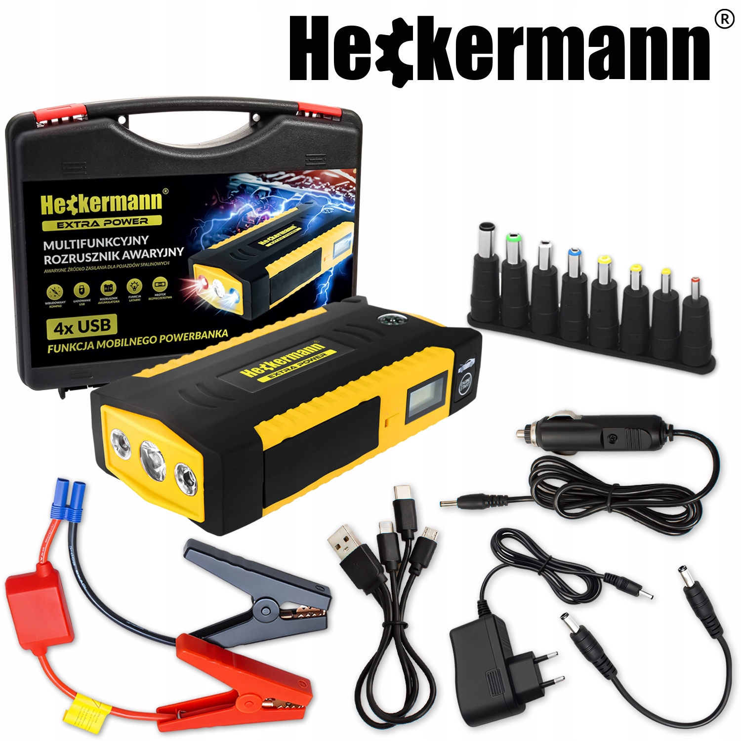Heckermann TM19B — це не просто стартер. Це також мобільний павербанк, оснащений 4 портами USB, завдяки яким ви можете заряджати свої електронні пристрої в будь-якій ситуації.