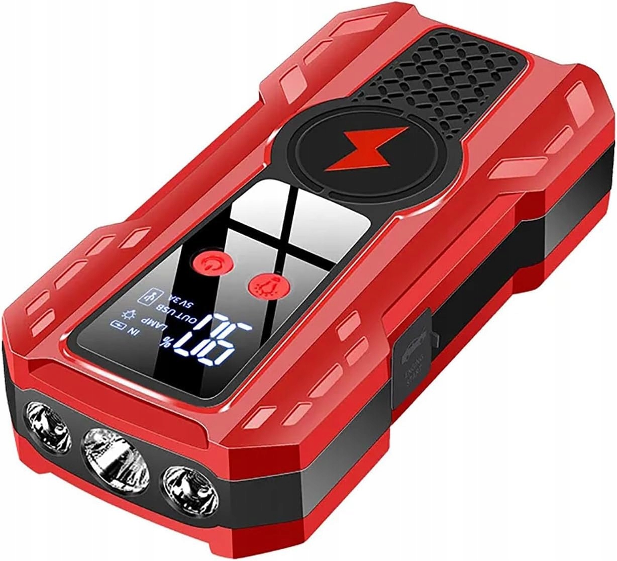 Підсилювач батареї оснащенийцифровим РК-екраном, який забезпечує чітке бачення стану використання та залишкової потужності стартера. Акумуляторний стартер може забезпечувати 3 режими світлодіодного освітлення. Підходить для кемпінгу, активного відпочинку, надзвичайних ситуацій і подорожей.