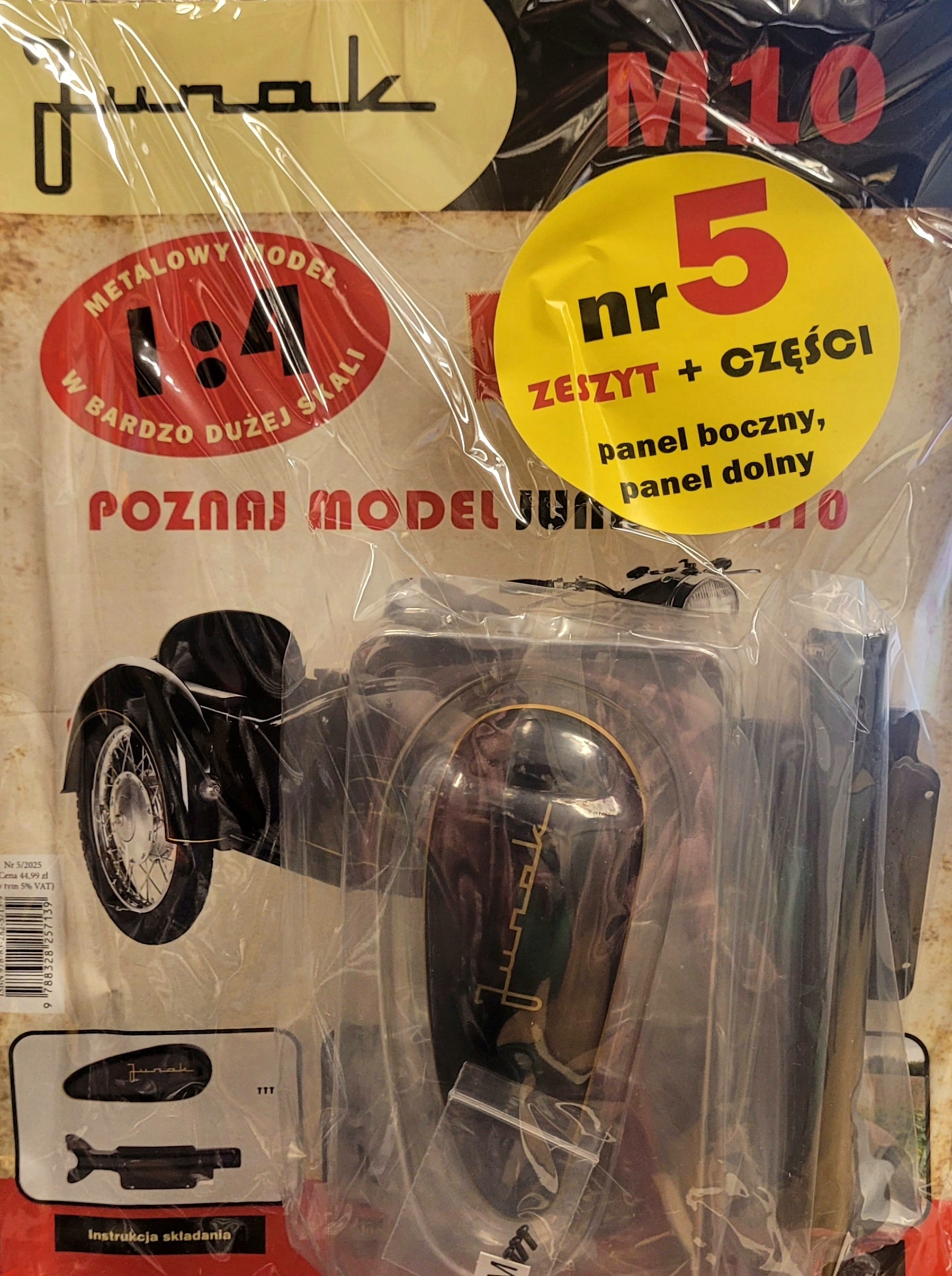Колекція Junak M10 дозволить вам побудувати модель цього легендарного мотоцикла під назвою "Польський Харлі". Він був вироблений до середини -1965. Суцільне, що має унікальний звук двох -колерів, був і все ще є мрією багатьох польських мотоциклістів. Кожен ноутбук містить детальні інструкції зі складання, які ретельно і чітко описують метод складання Junak M10. Крім того, цінні статті містять у кожному випуску, який розповість про захоплюючий світ та історію мотоциклів.