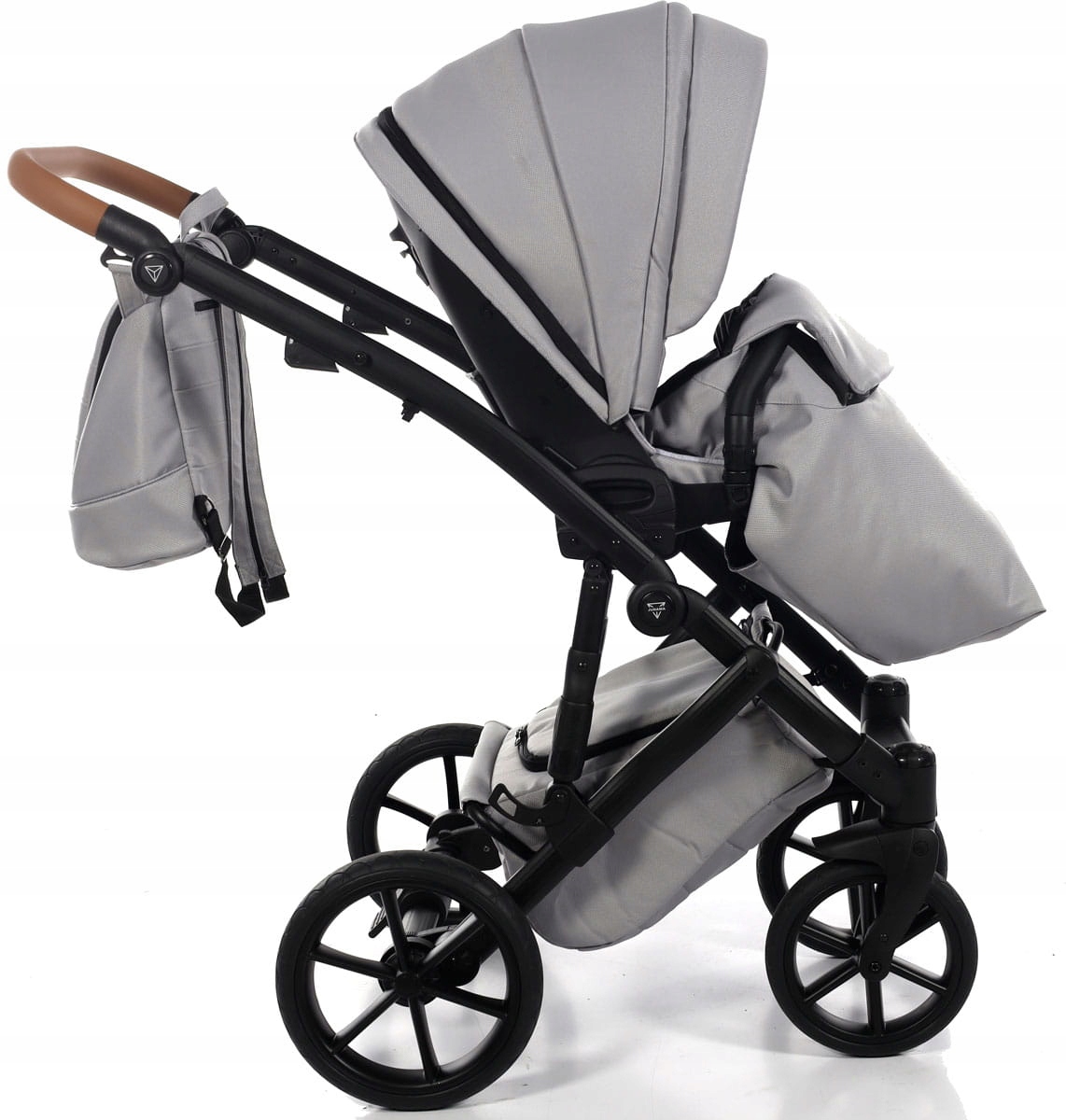 Коляска оснащена функціональною сумкою з плечовим ременем і системою швидкого кріплення на рамі коляски. Має інноваційну пластикову гондолу з обтічними формами. Гондола виготовлена з матеріалів найкращої якості, має місткий регульований капюшон і на ніжки, м'який матрац. Додатково ручка для перенесення та регульована спинка в гондолі.
