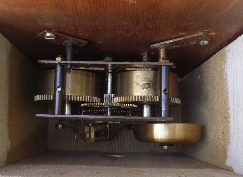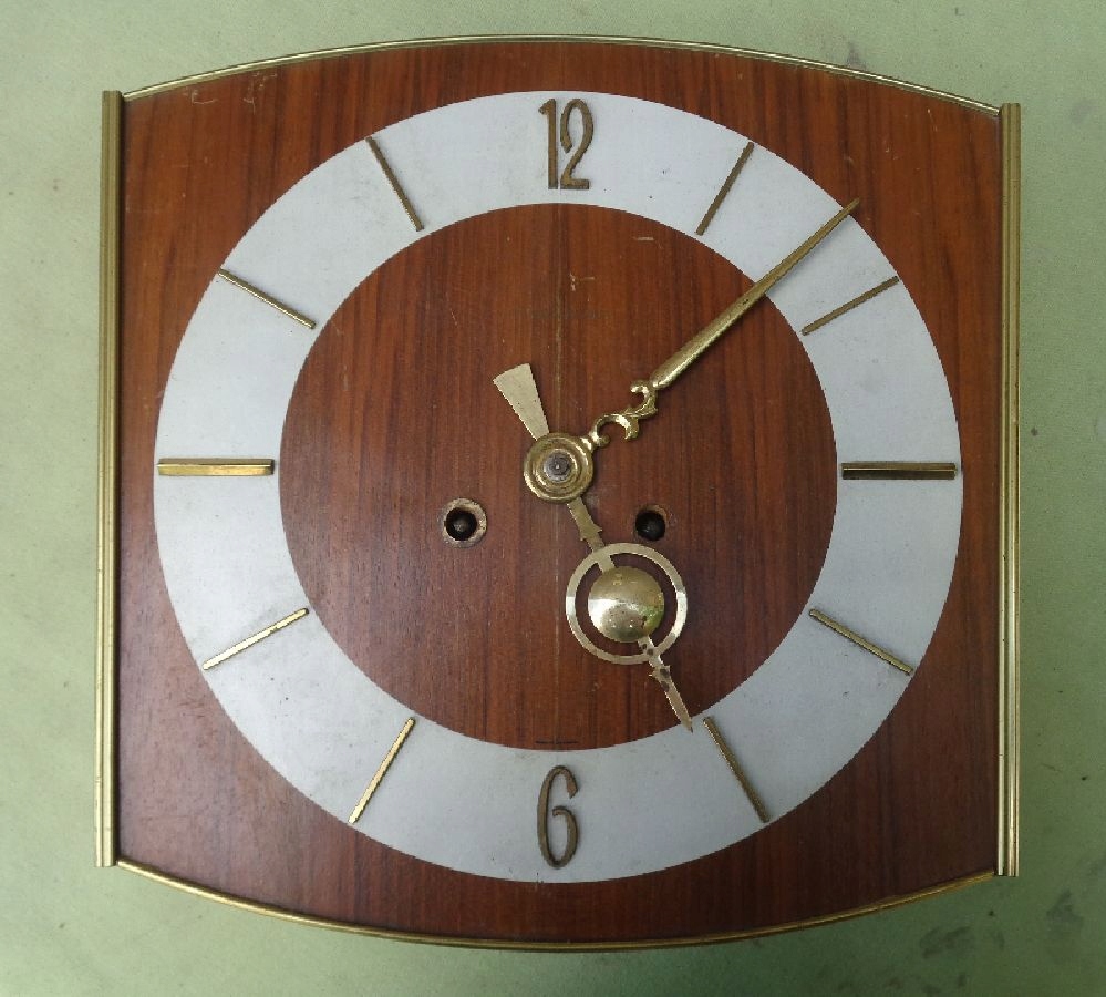Цікавий, цікавий кухонний годинник від Junghans 1960-х років. Експонат має цікавий дерев'яний футляр. Край корпусу покритий металевими латунними вставками. Експонат має цікавий циферблат із годинниковими позначеннями у вигляді ліній та арабських цифр. Годинник має цікаві металеві стрілки з латунним покриттям. Кришка механізму виготовлена з дерева. На годиннику відсутні маятник і нижня частина кришки. Механізм годинника не працює. Підходить для замовлення годинникареві. На фото видно підписи на годиннику. Рекомендую всім.