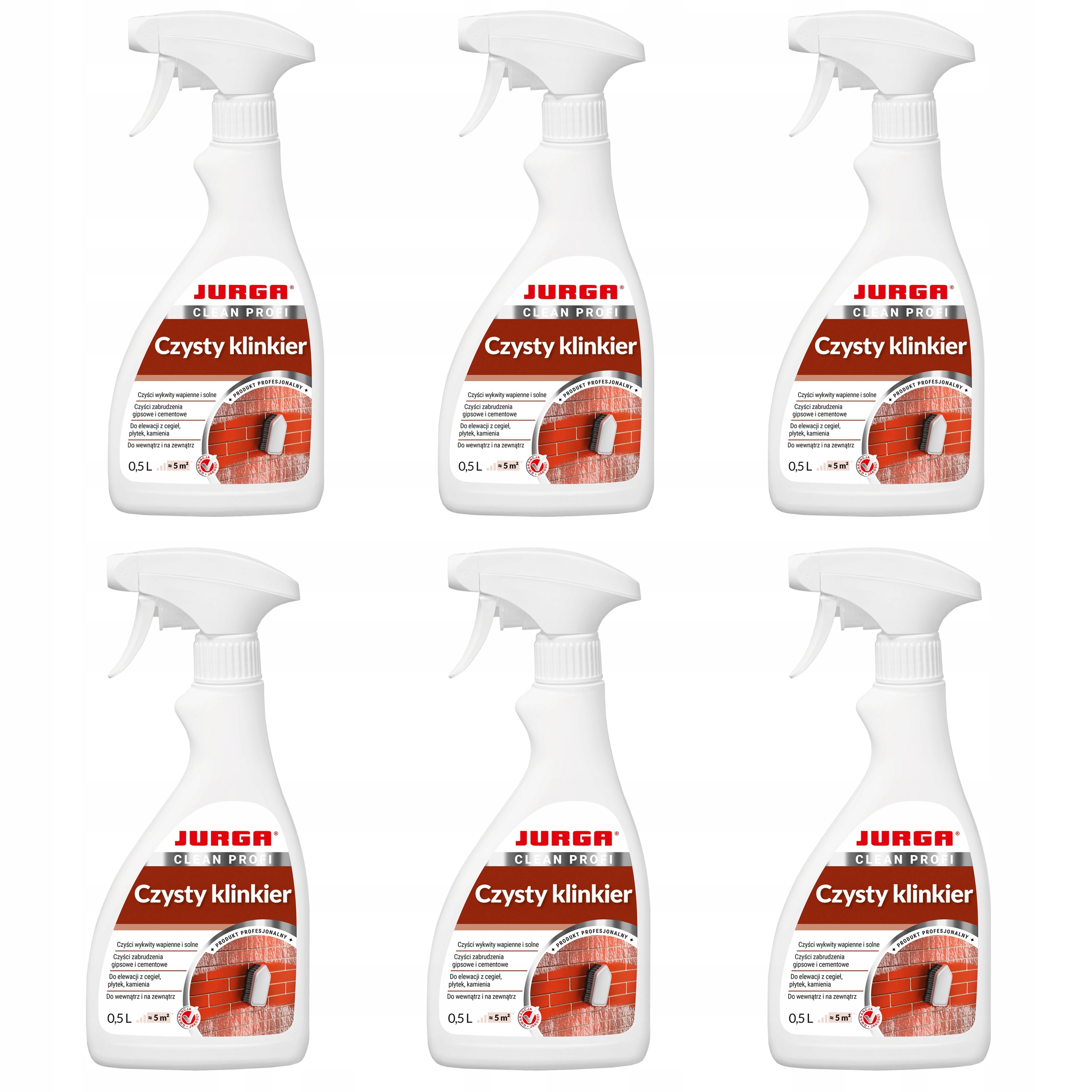 Jurga Czysty Klinkier - це готовий до використання, безпечний інтенсивний засіб для очищення та видалення вапна та солі плями від висолів і штукатурки, цементу, кіптяви, відкладень водяного накипу та легких іржавих плям.