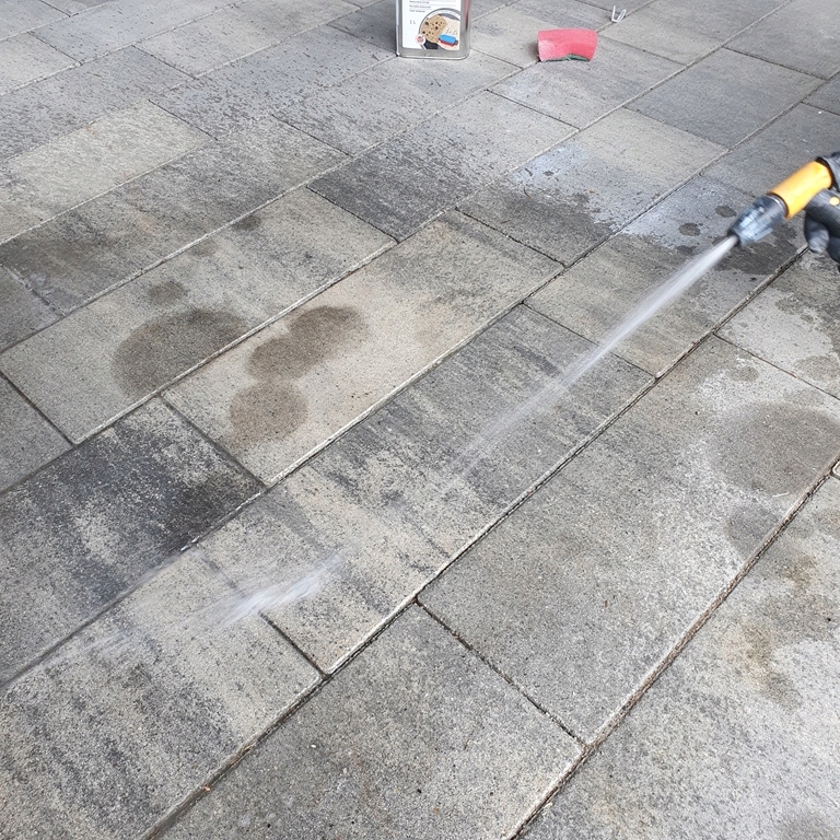 Якщо ваша бруківка, бетонна підлога чи плитка забруднені жирними масляними плямами, обов’язково спробуйте препарат JURGA CLEAN OIL STAIN REMOVER.