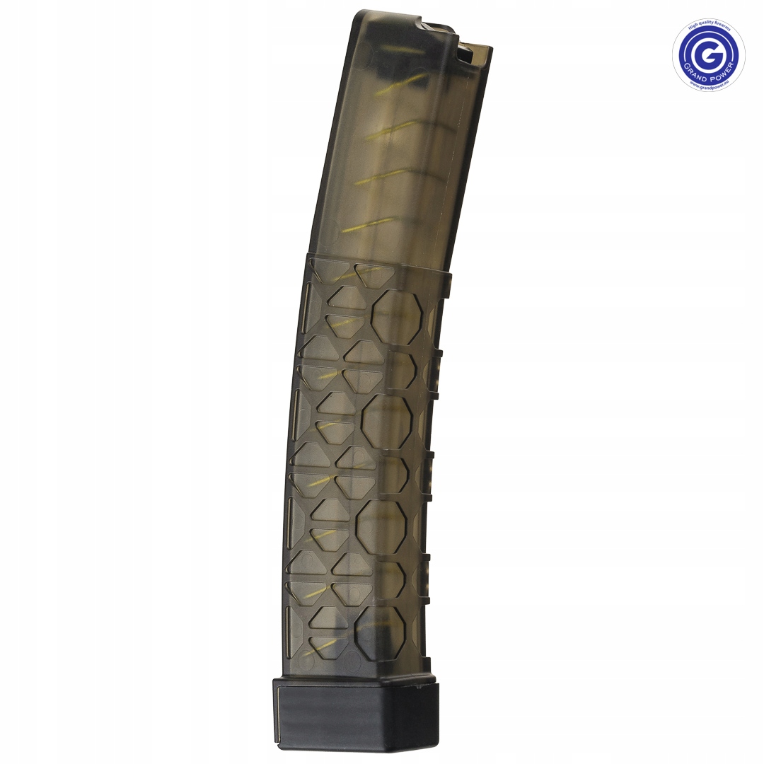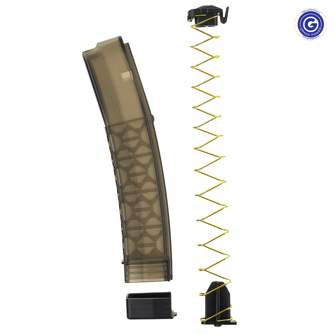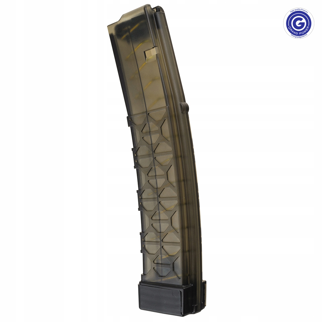 Оригінальний коробковий журнал від словацької компанії Grand Power. Доопрацьована версія карабінного магазину (PCC) Стрибог 9х19 мм А1/А2/А3. Нова версія магазину дугоподібної форми, мінімізує ризик заклинювання слідкувача, доопрацьований подавач (Follower), нова пружина. Більш товстий полімер LEXAN і упор проти глибокого вдавлювання.