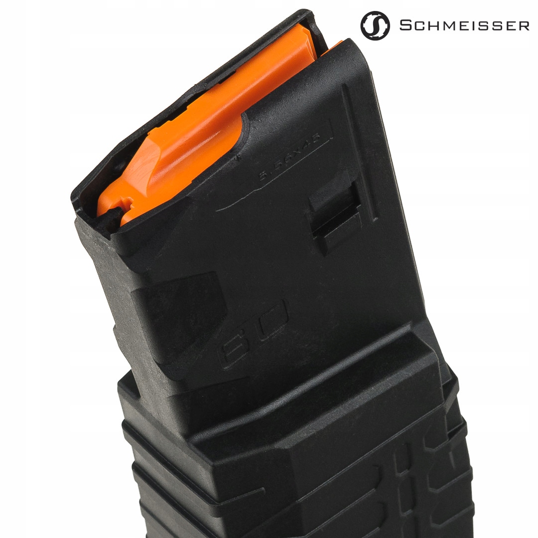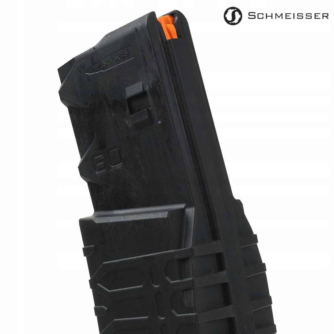 Коробчатий магазин великої місткості. Магазини Schmeisser S60 цінуються за надійність, стійкість до екстремальних дій і відсутність заїдань. Збільшена ємність до 60 патронів ідеально підходить для зброї вогневої підтримки та добре працює в динамічних змаганнях IPSC. Подвійний об’єм стандартних магазинів дозволяє стартувати на більшості довгих гусениць без необхідності заміни магазину під час курсу, що економить час і має кращий фактор.