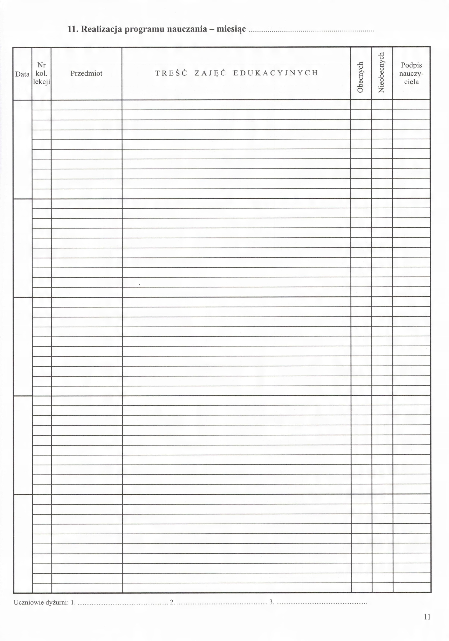 11. Виконання навчального плану – місяць .........