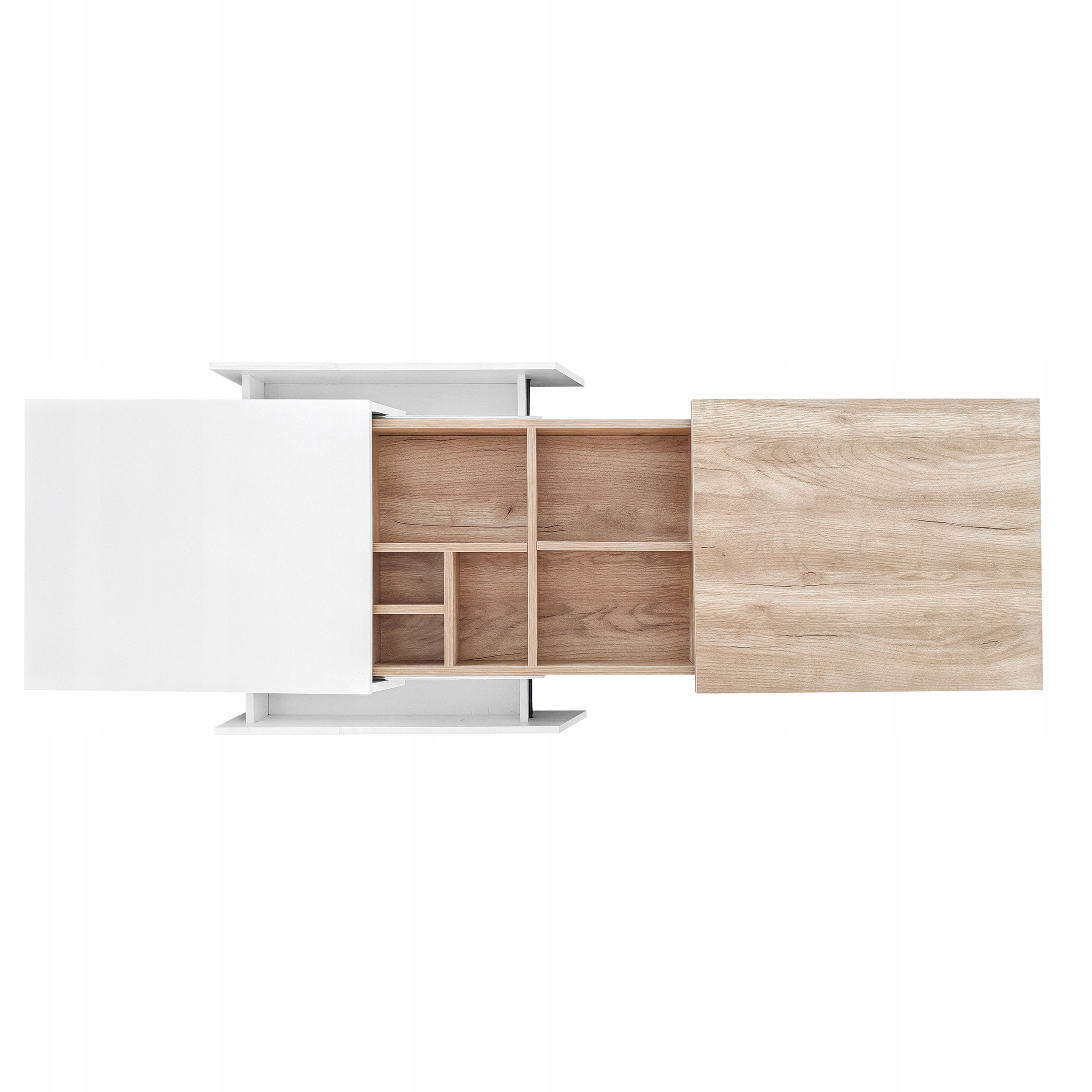 - ПРАКТИЧНИЙ ТА СТИЛЬНИЙ: цей журнальний столик є не лише практичним предметом меблів, а й стильним доповненням до вашого дому. Універсальний дизайн робить його придатним для багатьох застосувань - незалежно від того, потрібна вам стільниця для чашки кави або місце для зберігання необхідних речей у вітальні. Розсувна функція надає йому сучасний характер, роблячи його практичним і водночас привабливим.