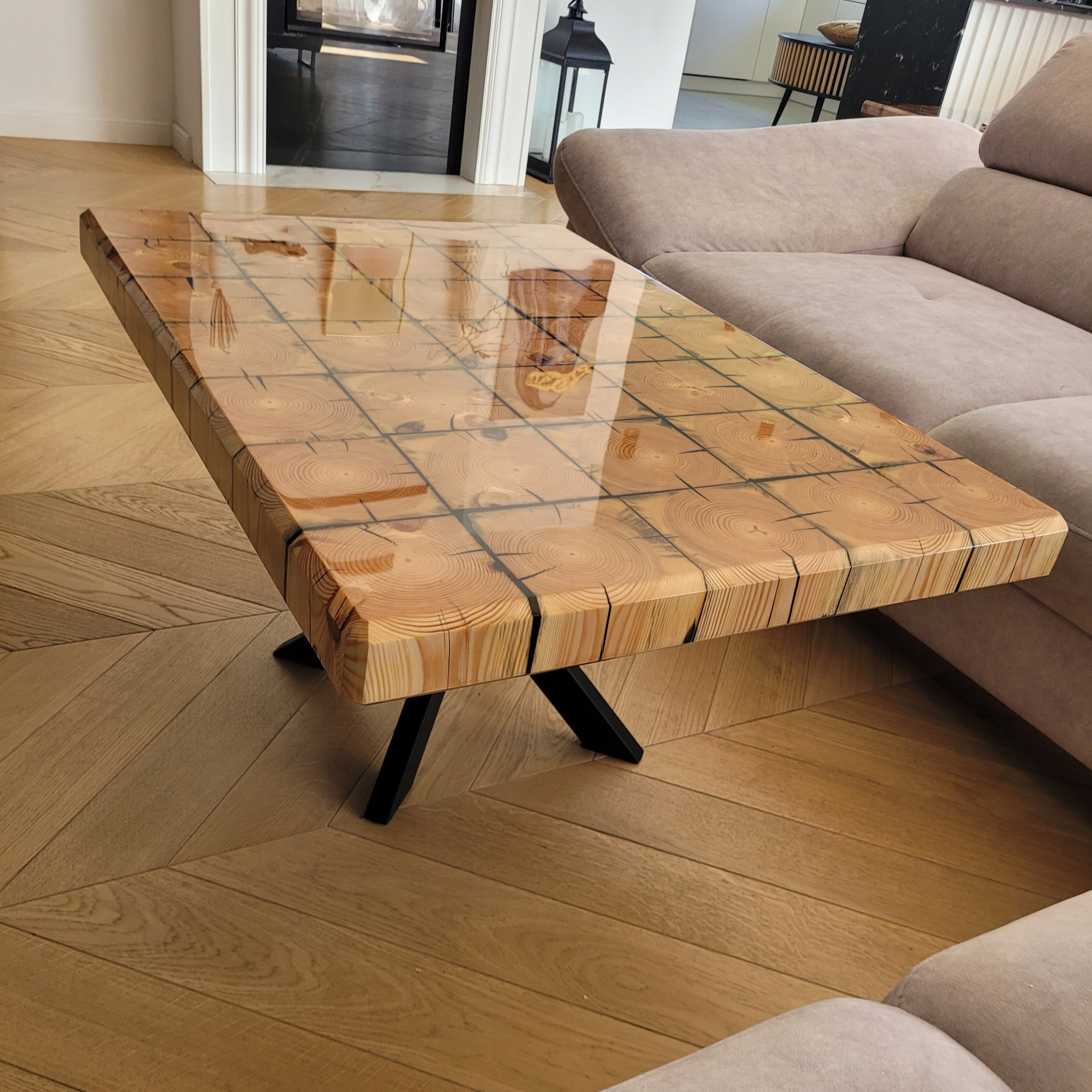 Стіл виготовлений вручну з найвищої якості епоксидної смоли та вакууму висушеної деревини, покритої триразовим поліуретановим лакам з високою блиском.