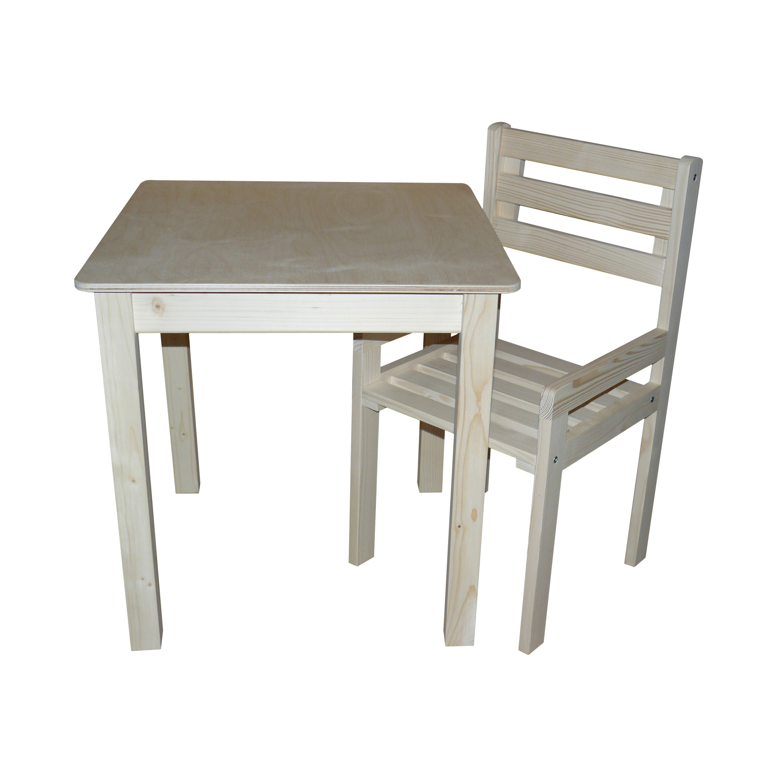 Комплект складається зі столу та стільця. Виготовлена з деревини ялини, не покрита лаком. Набір чудово доповнить меблі кімнати вашої дитини і зробить її інтер'єр теплим і веселим. Меблі функціональні та не займають багато місця. Крісло дуже зручне, а стіл забезпечує достатньо місця для гри. Ваші діти знайдуть ідеальне місце, щоб грати, малювати та малювати, і навіть їсти їжу.