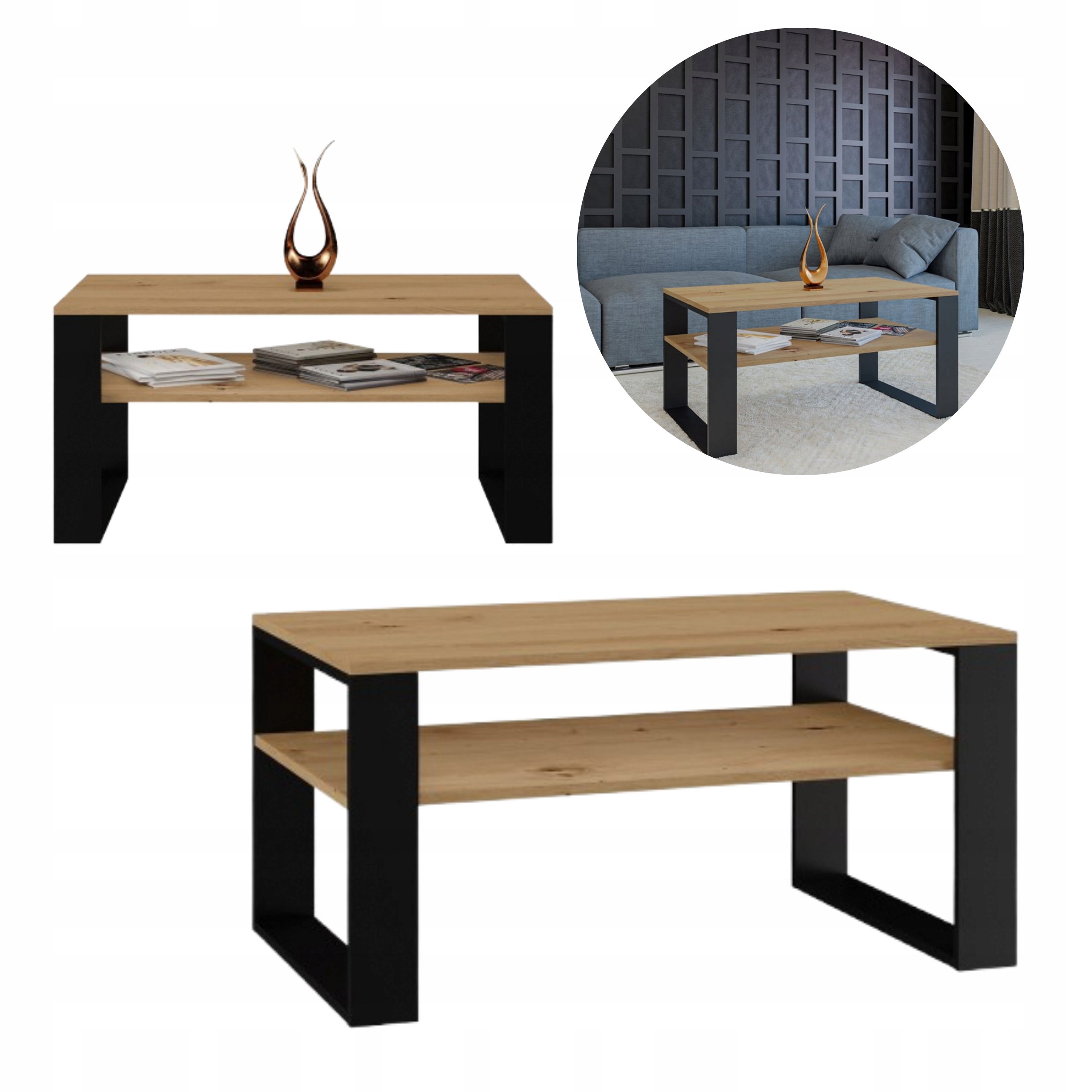 журнальний столик із сучасною полицею Dąb Artisan Czerń