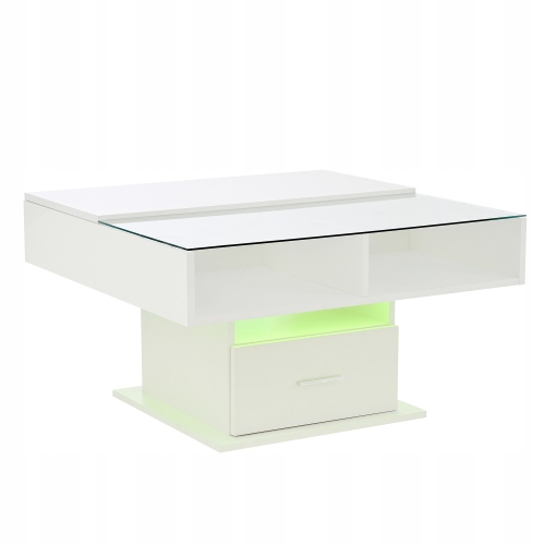 Універсальний глянцевий журнальний столик зі світлодіодним освітленням, регульованою висотою та гнучким місцем для зберігання – сучасний дизайн для віталень, офісів і невеликих квартир. Білий