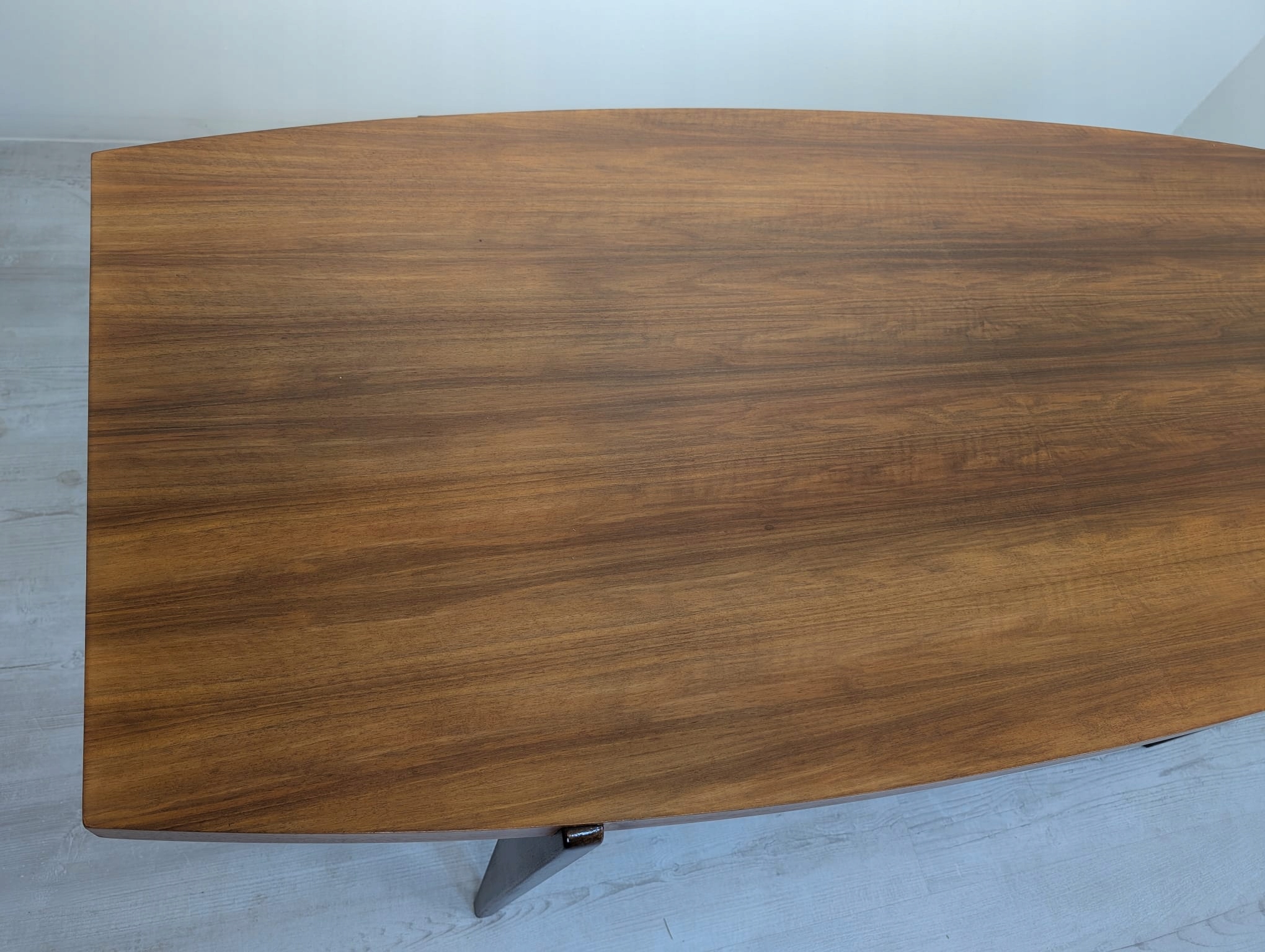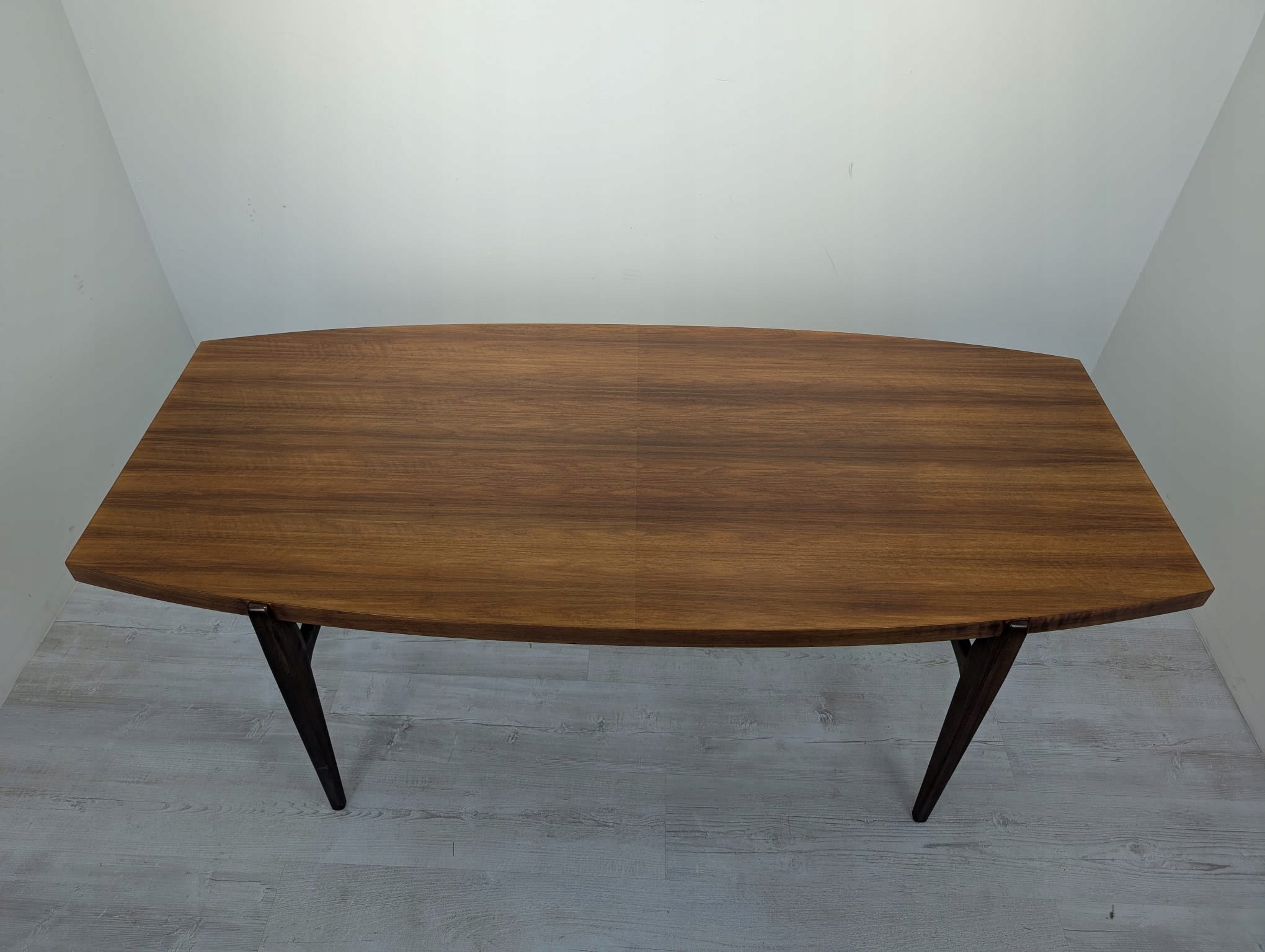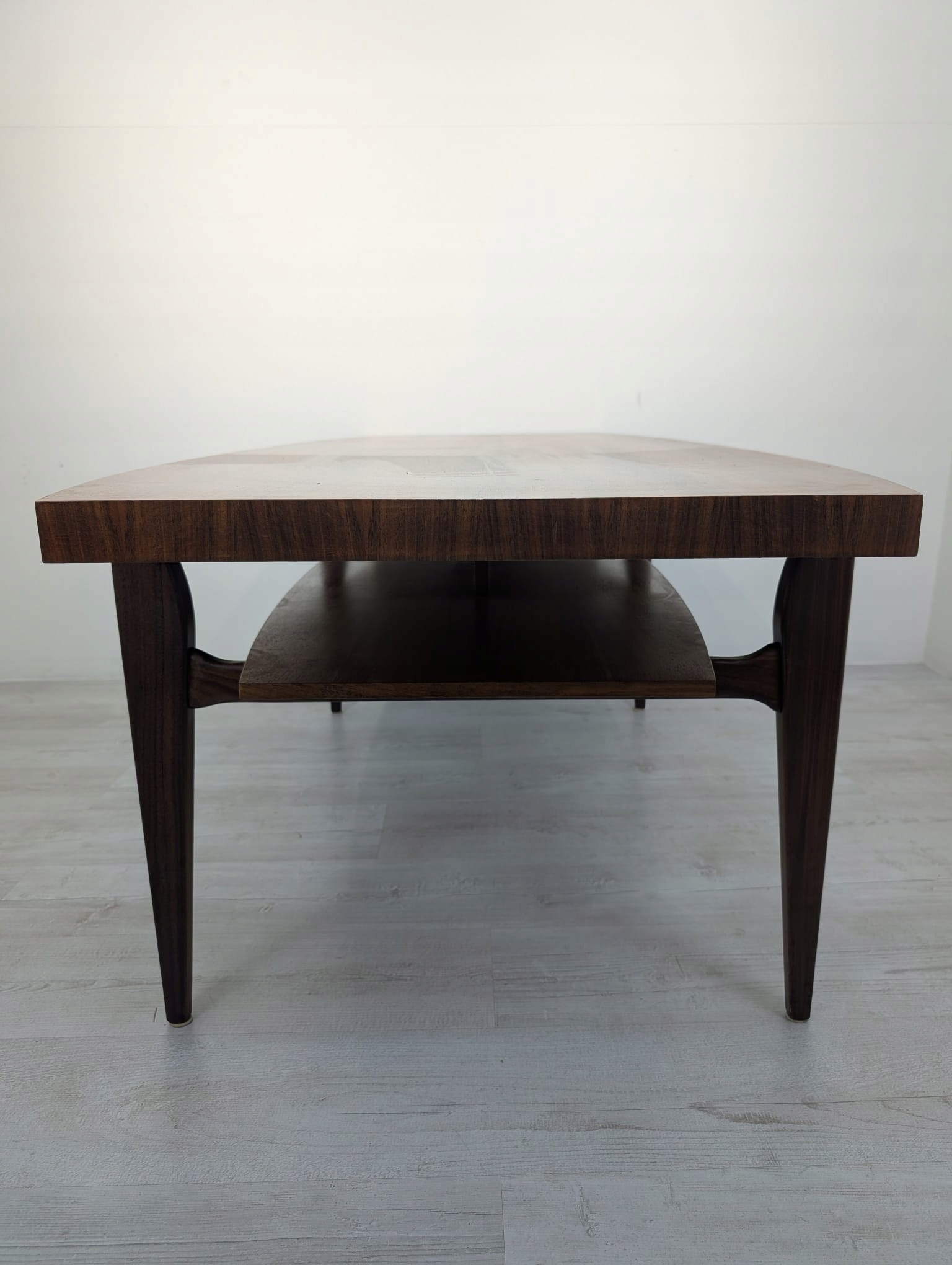 Сільний дерев'яний журнальний столик у ретро-стилі 1960-х років. Виготовлений з тика, він виглядає елегантно і вписується в різні інтер'єри. Стіл вживаний, але в хорошому стані