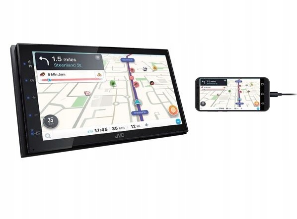 На додаток до стандартних функцій FM, Bluetooth і USB,KW-M25BT освоїв нову функцію дублювання USB для смартфонів Android. Для цього відповідну програму потрібно завантажити з Play Store і встановити на телефон. Якщо ваш телефон під’єднано до JVC через USB, його дисплей буде відображено один на одному на Moniceiver.