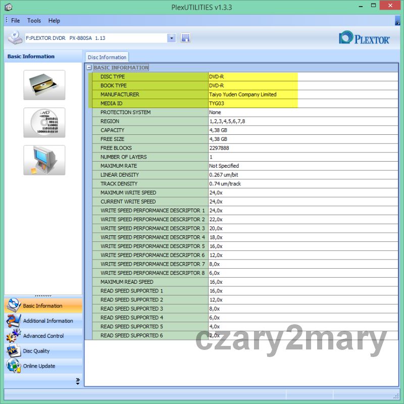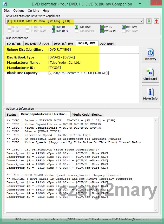 Диск має чудову якість і технологію виробництва від JVC\Taiyo Yuden, а також стратегію запису, яка залишався незмінним протягом багатьох років, а це означає, що навіть найстаріші приводи DVD-RW не мають проблем із розпізнаванням і записом цього носія DVD-R.