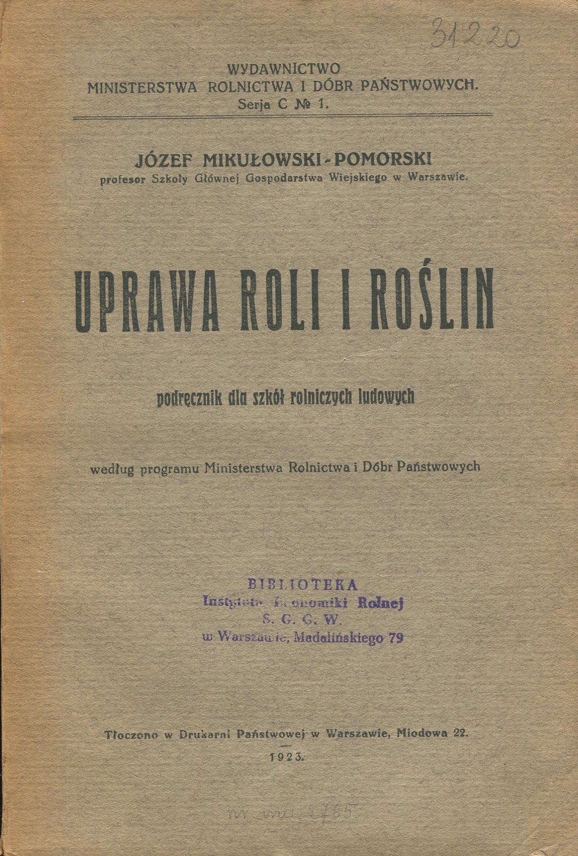 Józef Mikułowski-Pomorski UPRAWA ROLI I ROŚLIN 1923 rolnictwo