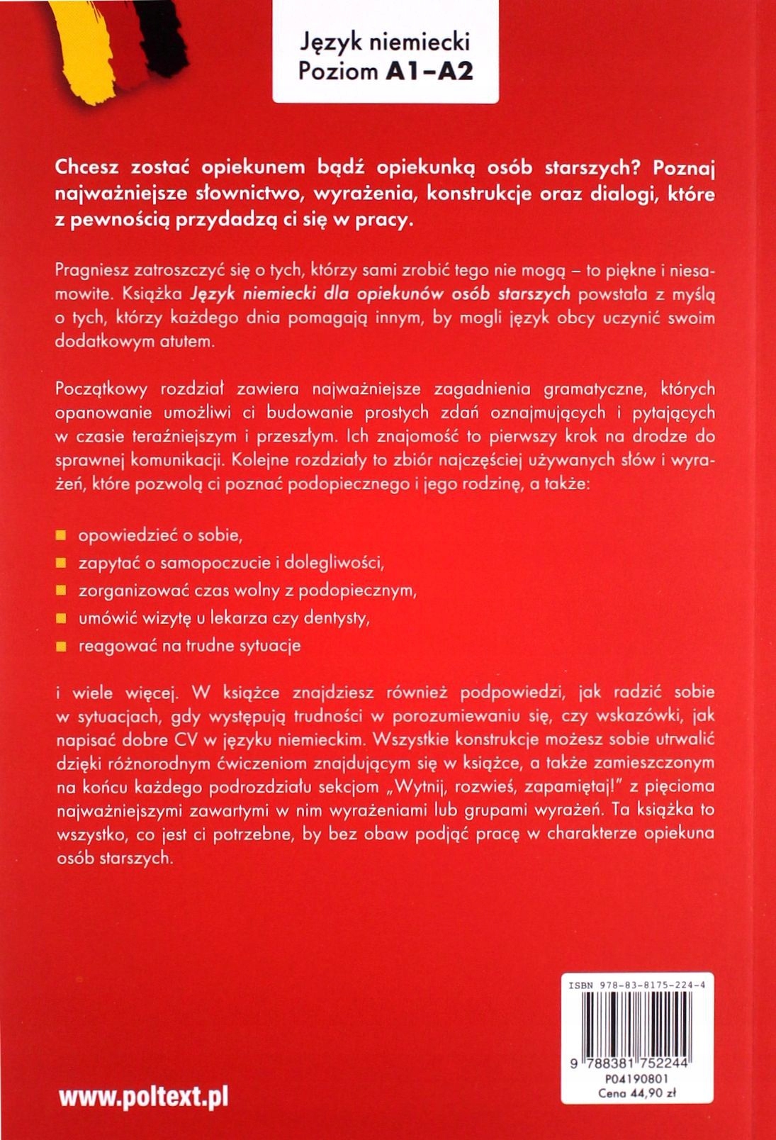 Просматривая «JĘZYK NIEMIECKI DLA OPIEKUNÓW OSÓB STARSZYCH - Nat», вы можете быть уверены, что данный товар из каталога «німецький» будет доставлен из Польши и проверен на целостность. В цене товара, указанной на сайте, учтена доставка из Польши. Внимание!!! Товары для Евросоюза, согласно законодательству стран Евросоюза, могут отличаться упаковкой или наполнением.