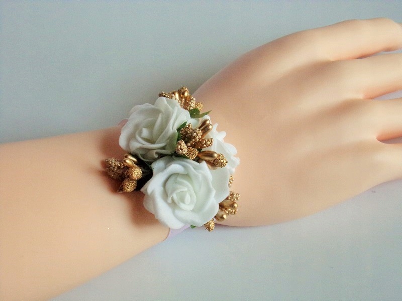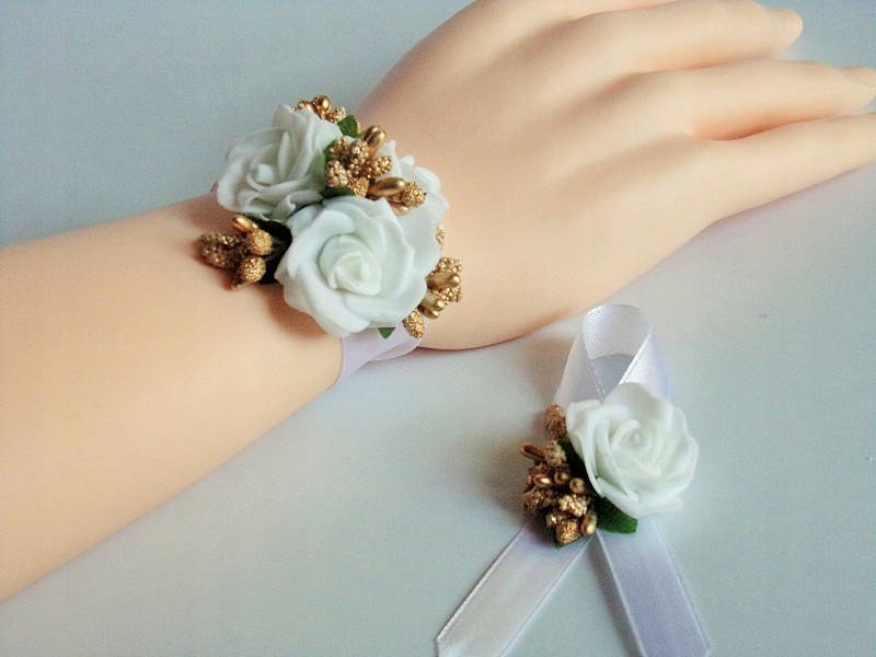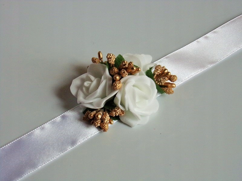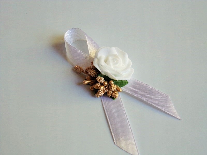 На руці перев'язаний білою атласною стрічкою шириною 25мм і довжиною приблизно 40см.